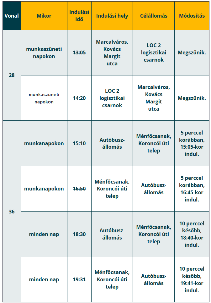 A módosított menetrend a 28-as és a 36-os busz vonalát érinti.