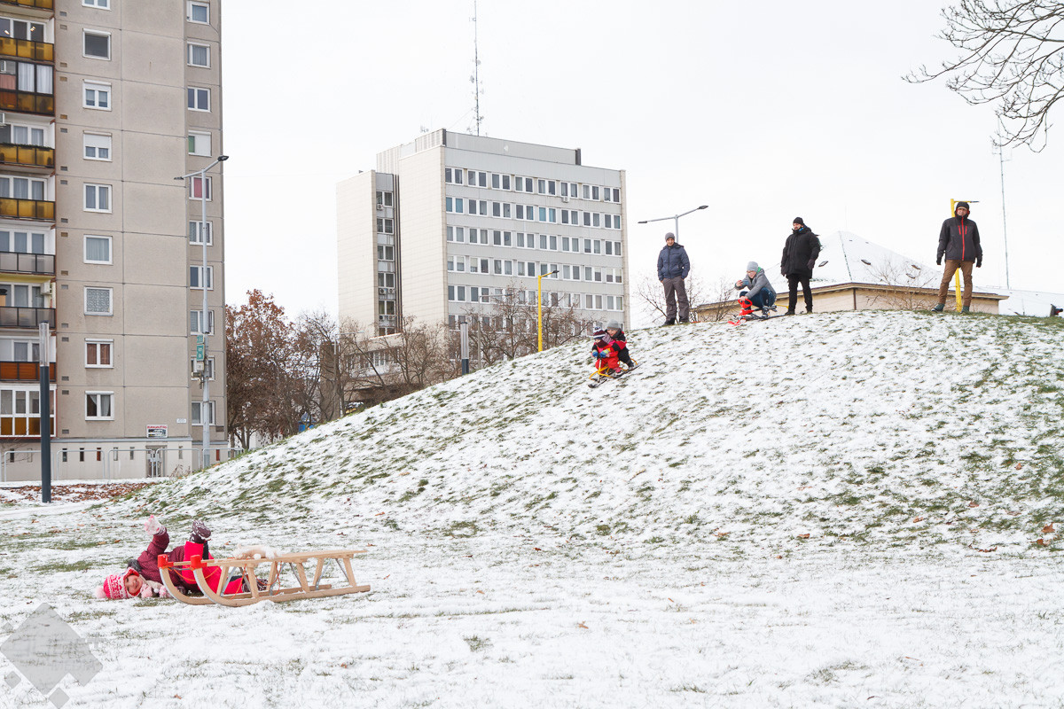 Csupán csak néhány centiméter esett, de mégiscsak havazott Győrben! Van, aki kevesellte, más már ezt a mennyiséget is sokallta, de szerencsére most is voltak olyanok, akik felhőtlenül tudtak örülni a vékony fehér lepelnek! Természetesen a gyerekekről van szó, és amint azt Ács Tamás friss fotói is nagyszerűen bizonyítják, elég hozzá egy kis lejtő, vagy éppen egy füves töltés, és máris előkerülhetett végre a fiatalok egyik nagy téli kedvence: a szánkó!!
