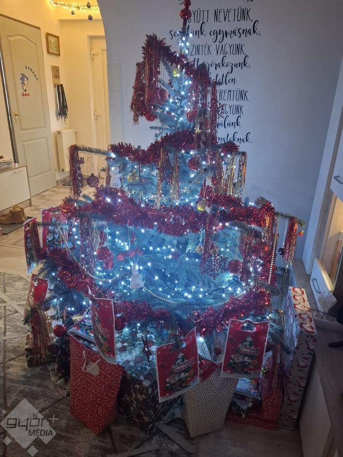Győrbe költöztünk, új otthon ölel, első karácsonyfánk fényben ünnepel. Szívünk díszítette, nem csak a kéz, nekem ez a fenyő a legszebb egész. Versenyre kel bátran minden fával, ragyogjon együtt a világgal. Békés ünnepet, szép reményeket, boldog karácsonyt és új évet kívánok minden Győrinek!