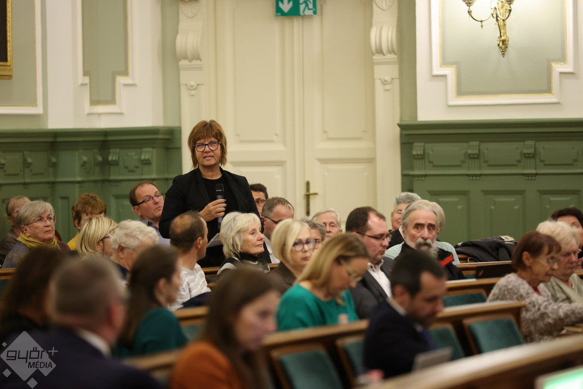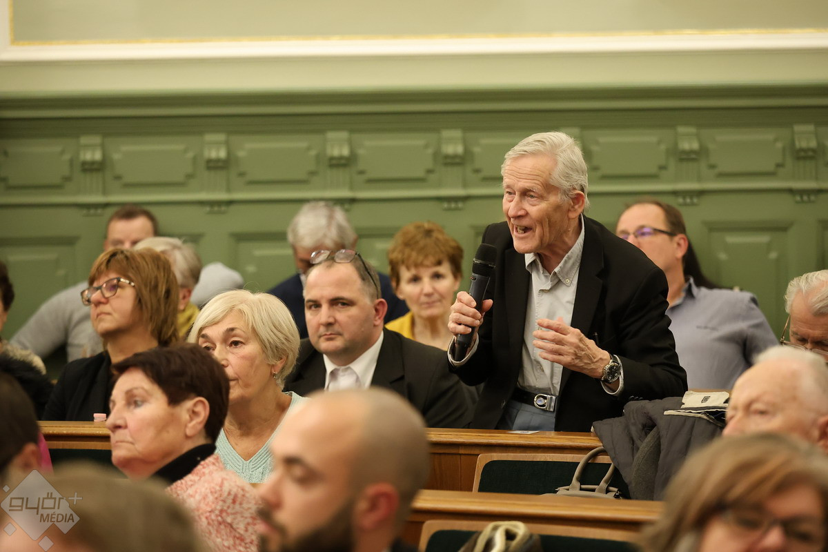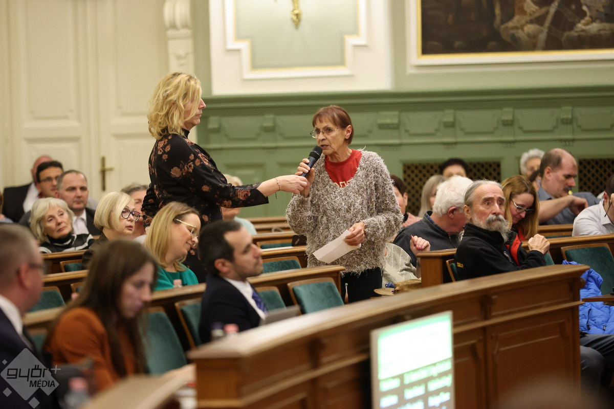 Külön kérdésblokk épült a Szent Anna Idősotthon bővítése köré. Az első kérdést a témában Bana József, nyugalmazott levéltár-igazgató, Győr díszpolgára tette fel, aki az mellett érvelt: az idősotthon bővülését a marcalvárosi Kiserdőben kell engedni, hiszen a 150 új, tervezett férőhely enyhítené az idősek elhelyezése körüli problémákat a városban. Bana József azt is elmondta: közel 2000 fős a várólista az intézménybe. A bővítés mellett szólalt fel az idősotthon vezetője és több dolgozója is. Mint ismert, a Kiserdő jelenlegi területének 97,5 százalékát zöldterületté nyilvánította a korábbi városvezetés, a maradék 2,5 százalékről Pintér Bence polgármester nyilatkozott úgy: ezt is védetté kell tenni. A felszólalásokra reagálva azonban már azt mondta: a marcalvárosiakkal ő korábban arról egyeztetett, hogy uszoda és idősotthon ne épüljön a Kiserdőbe, külön az idősotthonról nem kérdezte az ott élőket.
