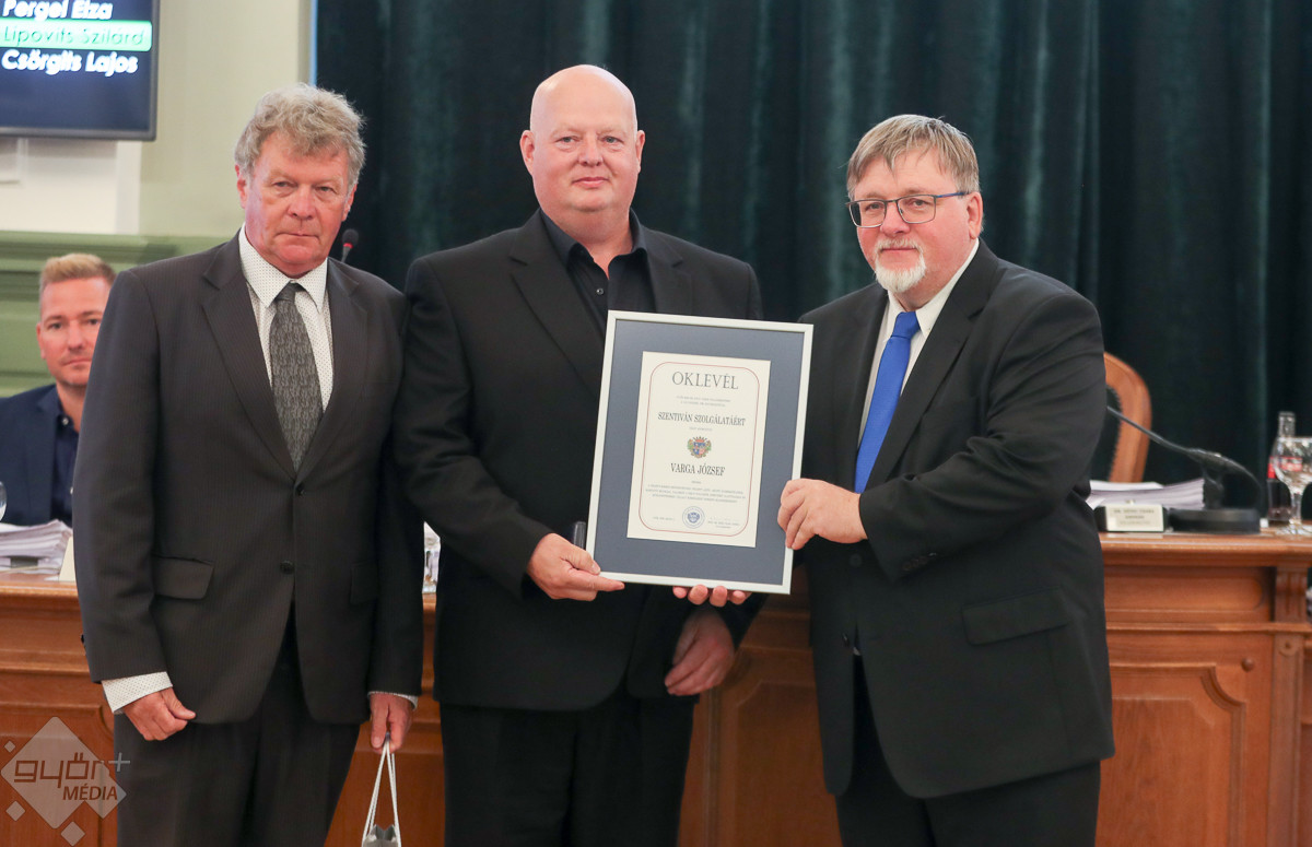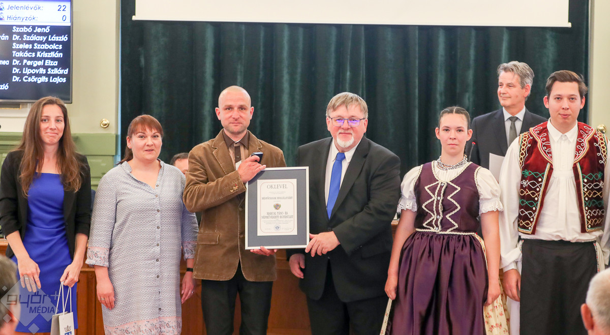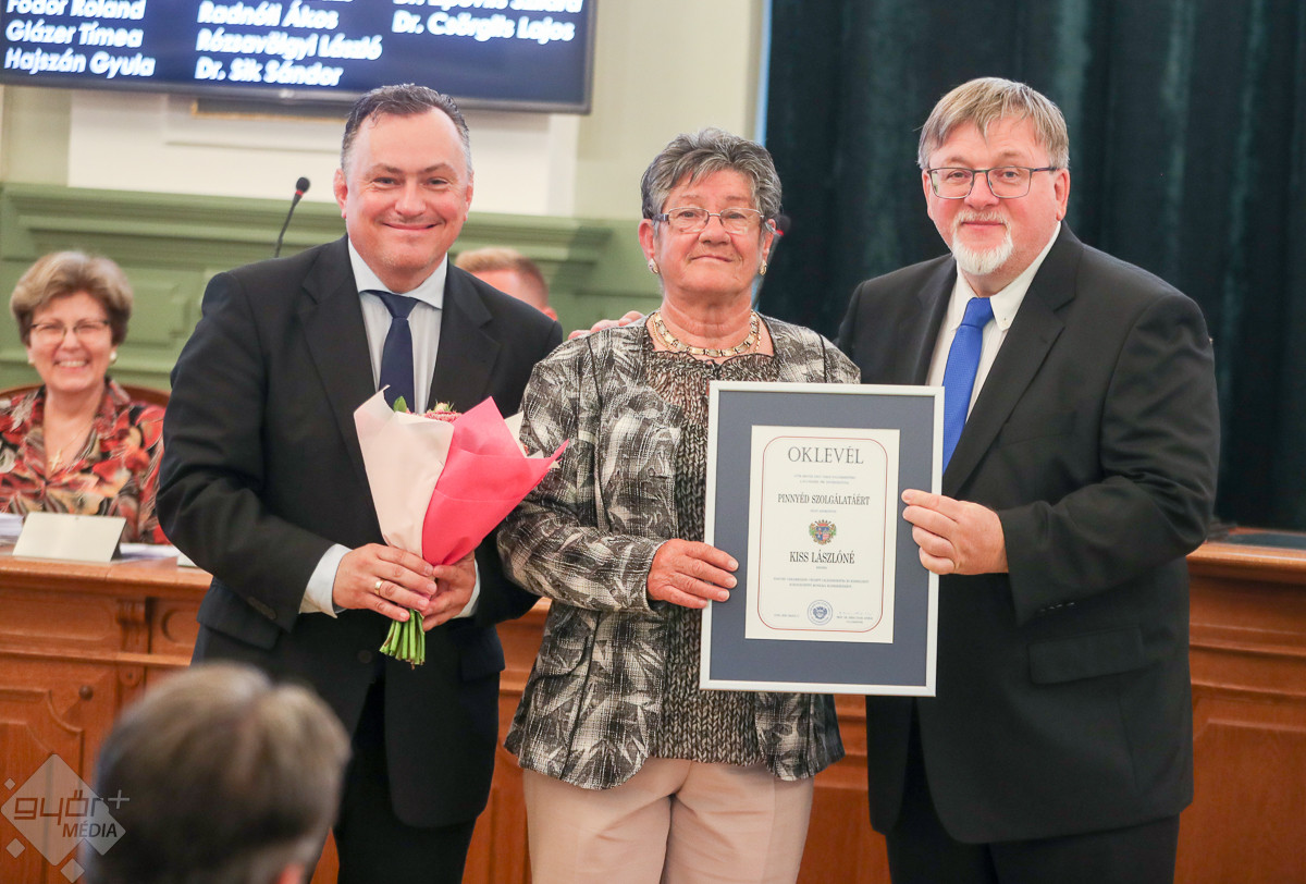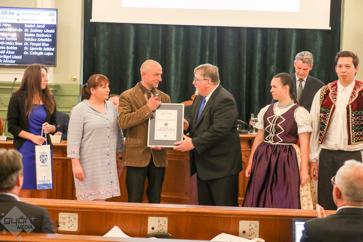A közgyűlés elején „Ménfőcsanak Szolgálatáért” díjat kapott a Marcal Tánc- és Népművészeti Egyesület a kulturális és művészeti értékek létrehozásában, a ménfői és csanaki népi hagyományok ápolásában, valamint a helyi közösségi élet szervezésében vállalt aktív szerepe elismeréseként. Endrédi Ferenc „Nádorváros Szolgálatáért” díjat vehetett át Nádorváros közösségéért végzett önzetlen, elkötelezett és kiemelkedő társadalmi munkája, valamint közösségépítő tevékenysége elismeréseként. A „Pinnyéd Szolgálatáért” díjat Kiss Lászlóné kapta a városrészben végzett lelkiismeretes és kiemelkedő közösségépítő munkájáért.