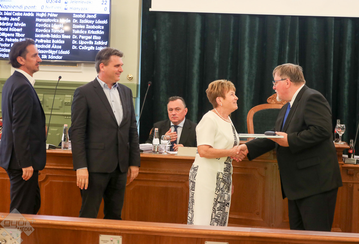 Dr. Dézsi Csaba András polgármester a júniusi közgyűlés elején tizenkét Városrész Szolgálatáért díjat adott át a városrészek önkormányzati képviselőivel.