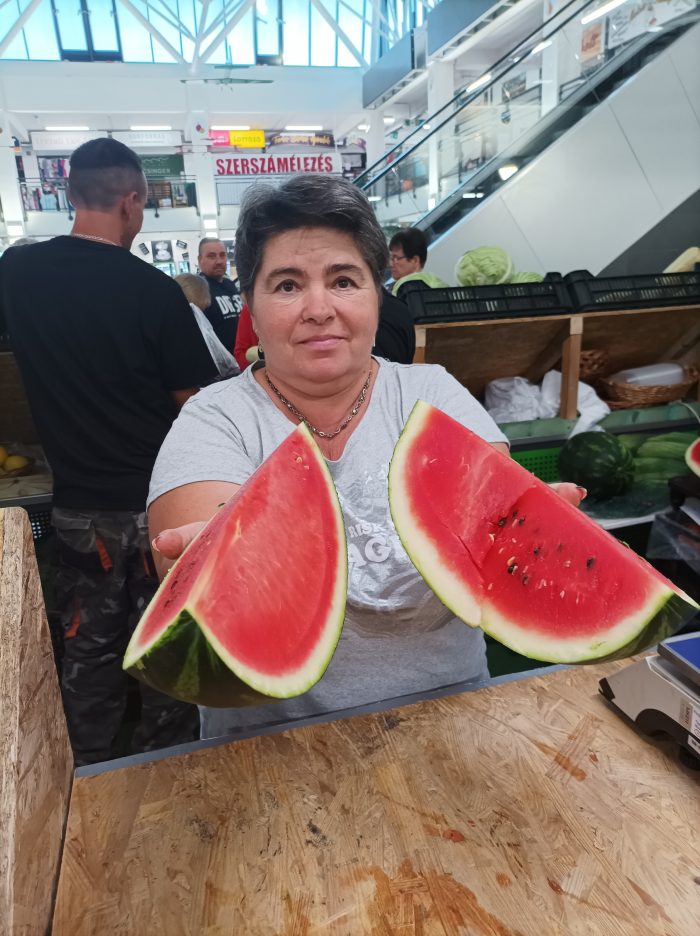 „Mi is Békésből hoztuk az első magyar dinnyéket, ami rendkívül jó minőségű, kevésbé magozott, szép piros és könnyű megállapítani róla, hogy finom, ha közepesen kongó hangot ad, amikor megkopogtatjuk, akkor nem tévedhetünk az ízét illetően” – tette hozzá Markó Vendel, egy másik zöldség-gyümölcskereskedő.