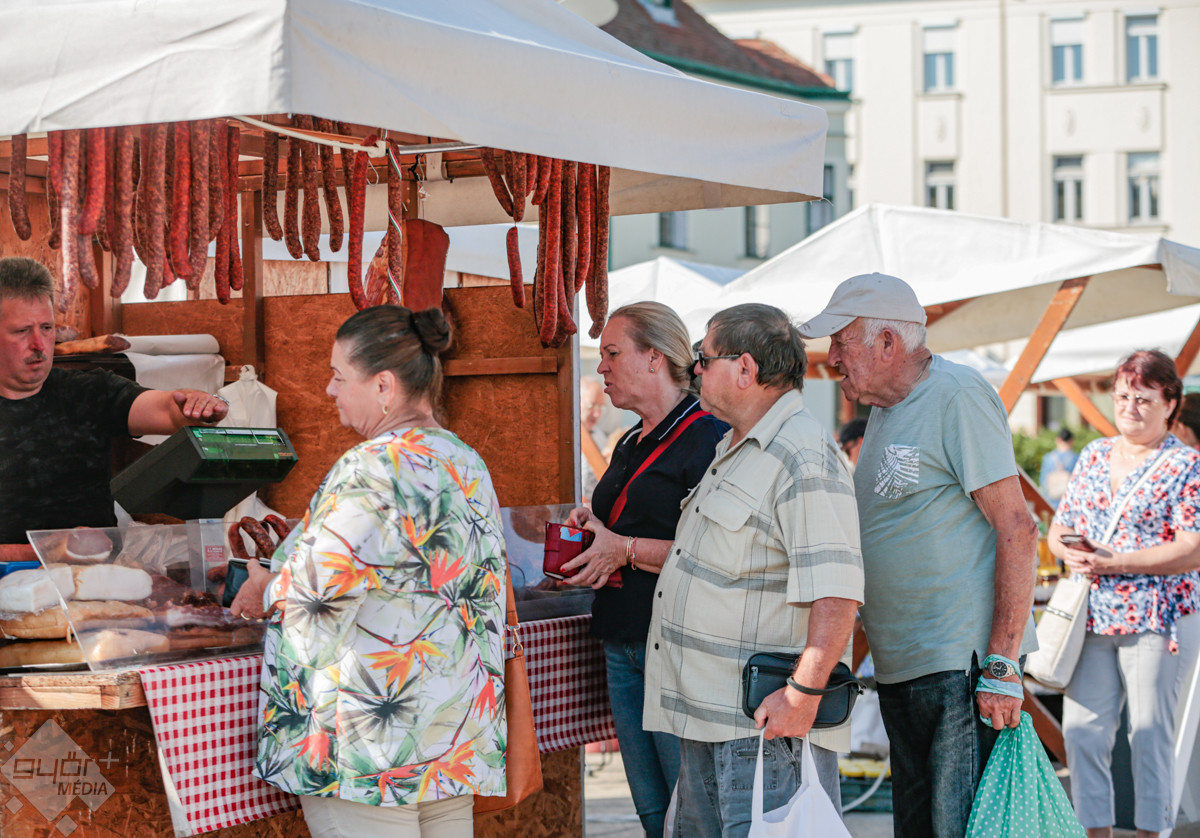 Hosszú sorok álltak a „henteseknél”, kolbászok, hurkák, szalonnák, sonkák csábítottak már az illatukkal is vásárlásra. Az édesség kedvelők sem maradtak nasi nélkül, reggel sütött házi rétesek, mézeskalácsok, “egészséges” sütemények és rábaközi perec is volt a pultokon.