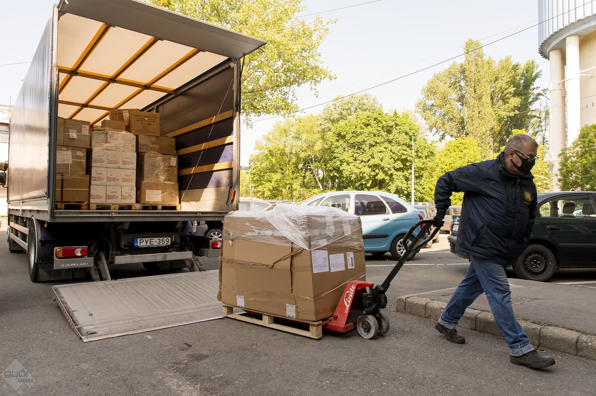 Amint az a Magyar Távirati Iroda ma délelőtti fényképes tudósításából kiderül, a győri szállítmány már meg is érkezett a rendeltetési helyére. A Petz Aladár Megyei Oktató Kórházban egy teherautónyi védőfelszerelést vettek át az intézmény munkatársai.