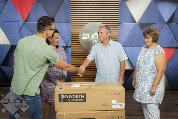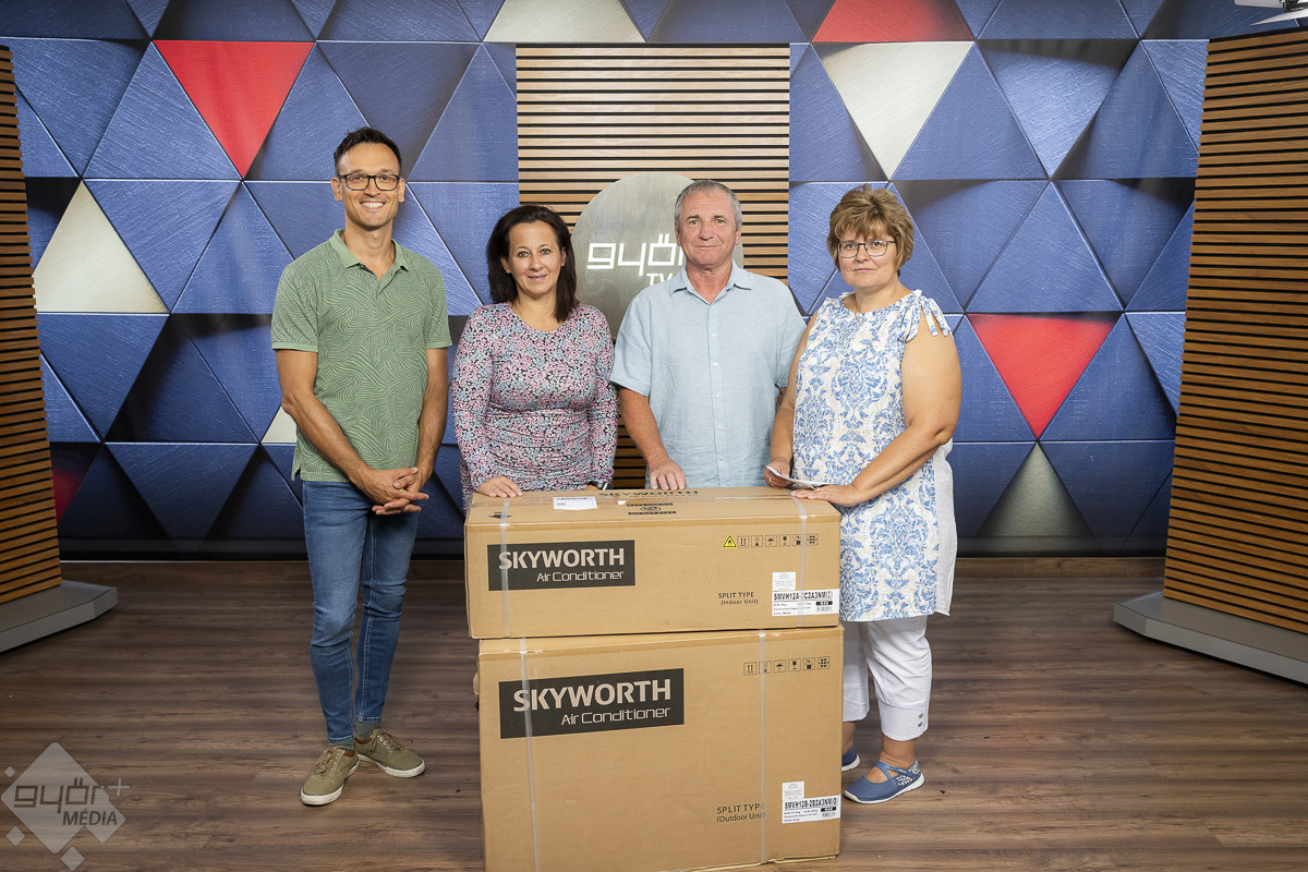 A Lufi Fagyizó és a Győr+ Média négyhetes játéka véget ért. Múlt héten a Győr+ Rádióban kisorsoltuk a fődíjat, egy 3,5 kW-os Skyworth Vela inverteres hűtő-fűtő klímát a Tribe Trade Kft. jóvoltából. Csütörtökön pedig székházunkban már át is vehette nyereményét a szerencsés házaspár.