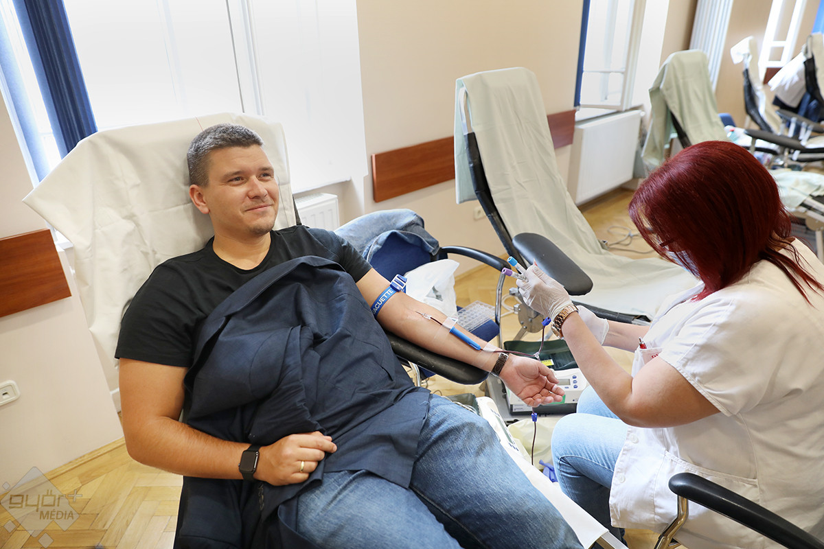A véradók között volt a Győrplusz Média fotóriportere, O. Jakócs Péter is, majd Petrov Iván, sportért felelős polgármesteri biztos került sorra.