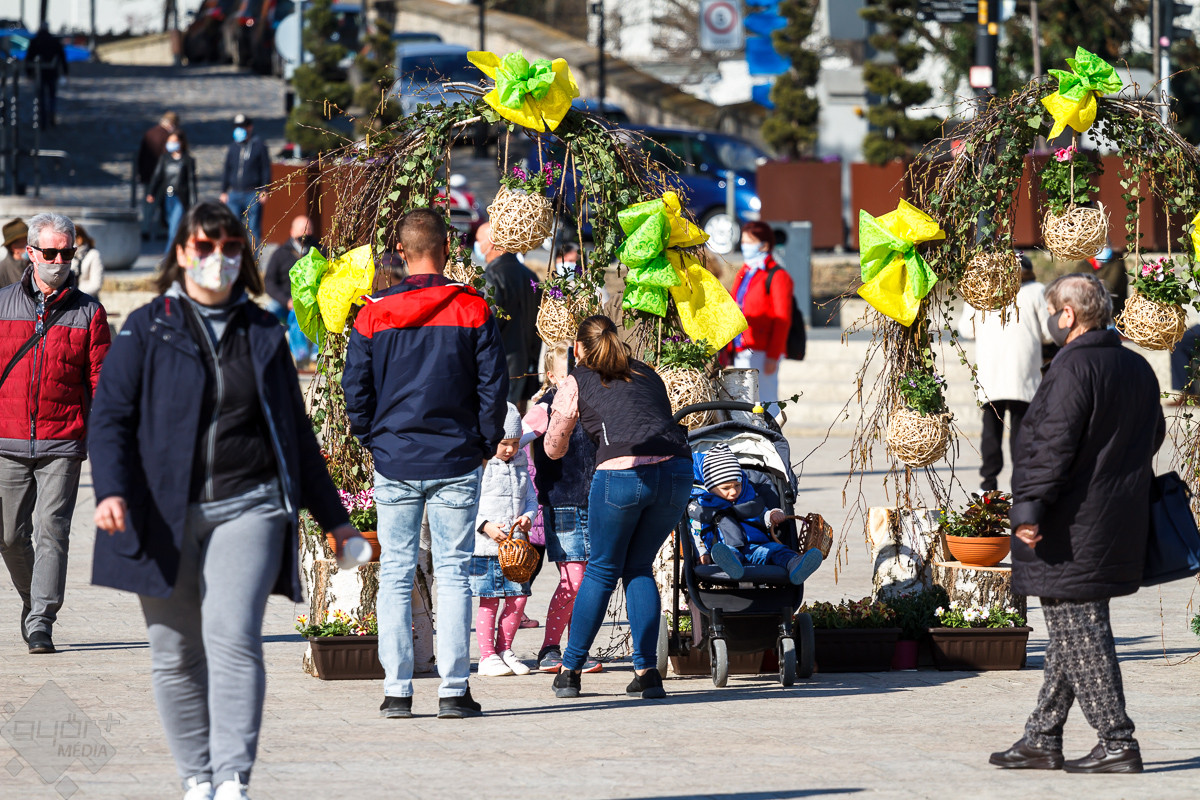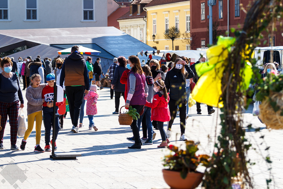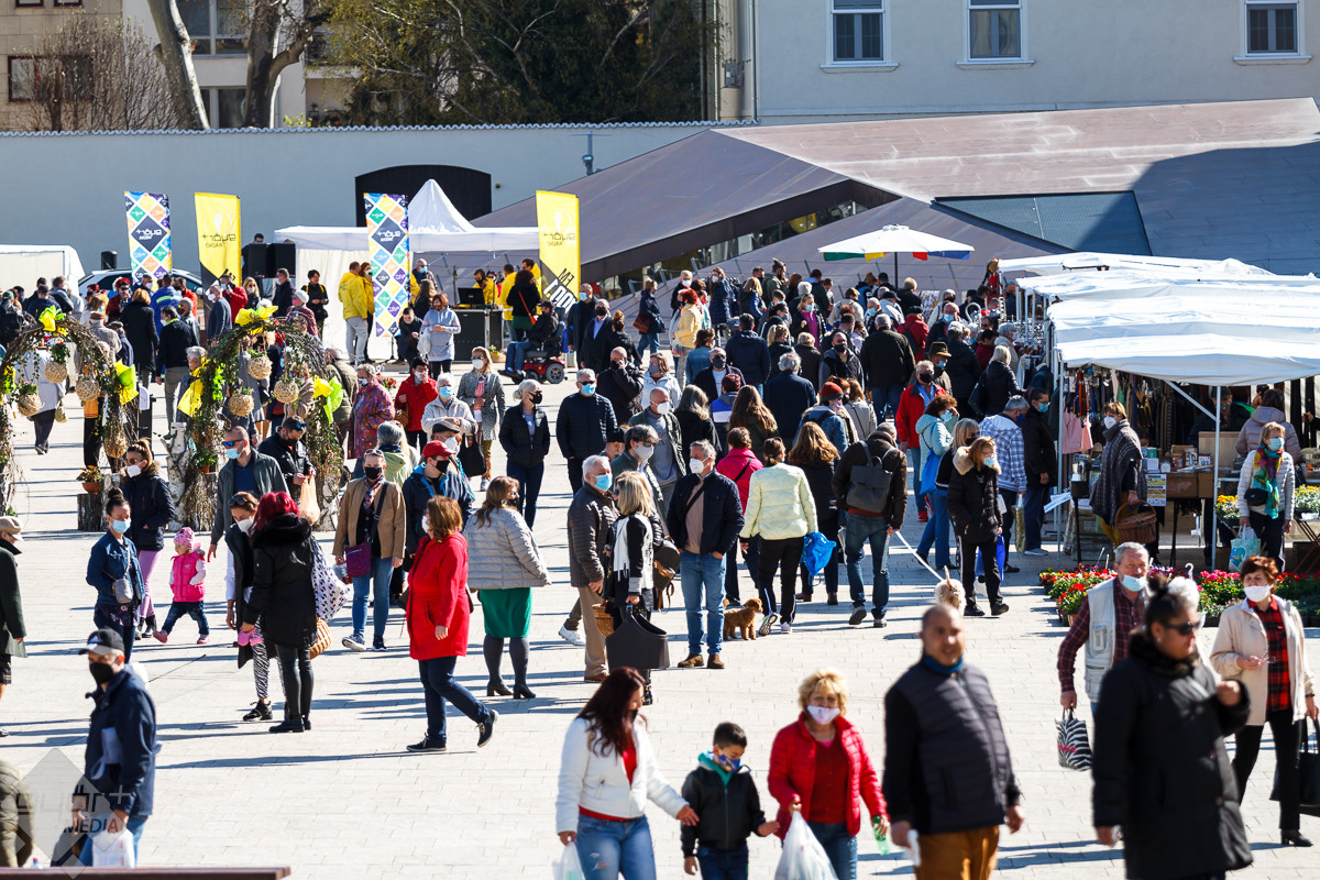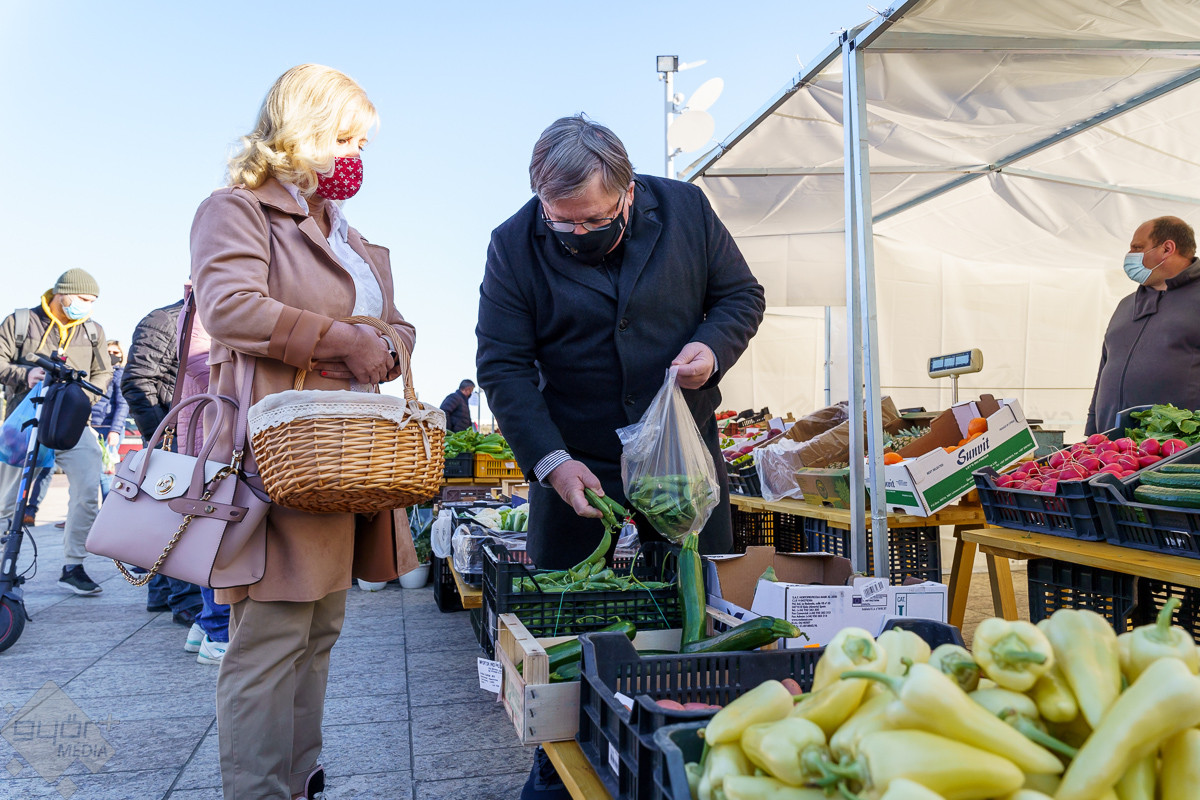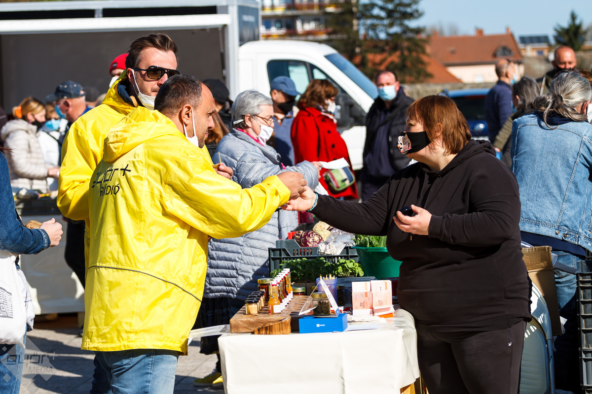 „Öröm látni ezt a sok mosolygós arcot!” – mondta el a Győr+ Rádió helyszíni interjújában Marsovszky Adrien, a városháza belváros fejlesztéséért felelős tanácsadója. És valóban így volt. Árus, vásárló mosolyogva társalgott a tavaszi díszbe öltözött téren. Kínálta magát a harsogóan friss piros retek, a roppanós alma, a szabadföldön termelt újhagyma, répa, zöldség.