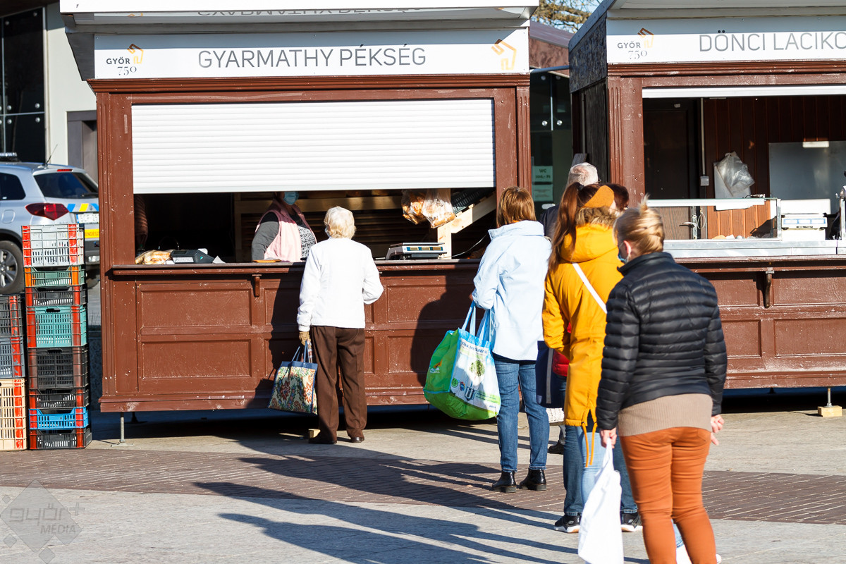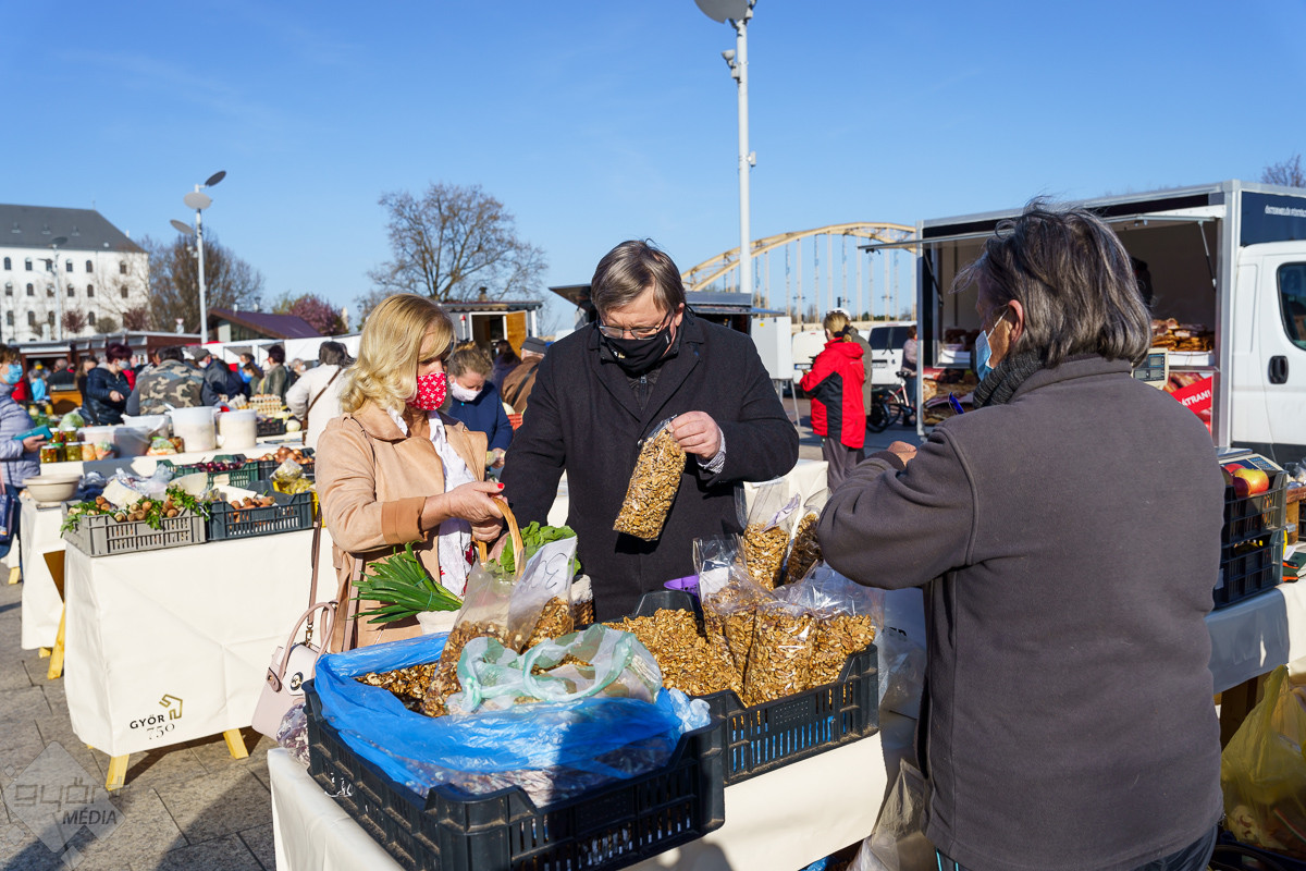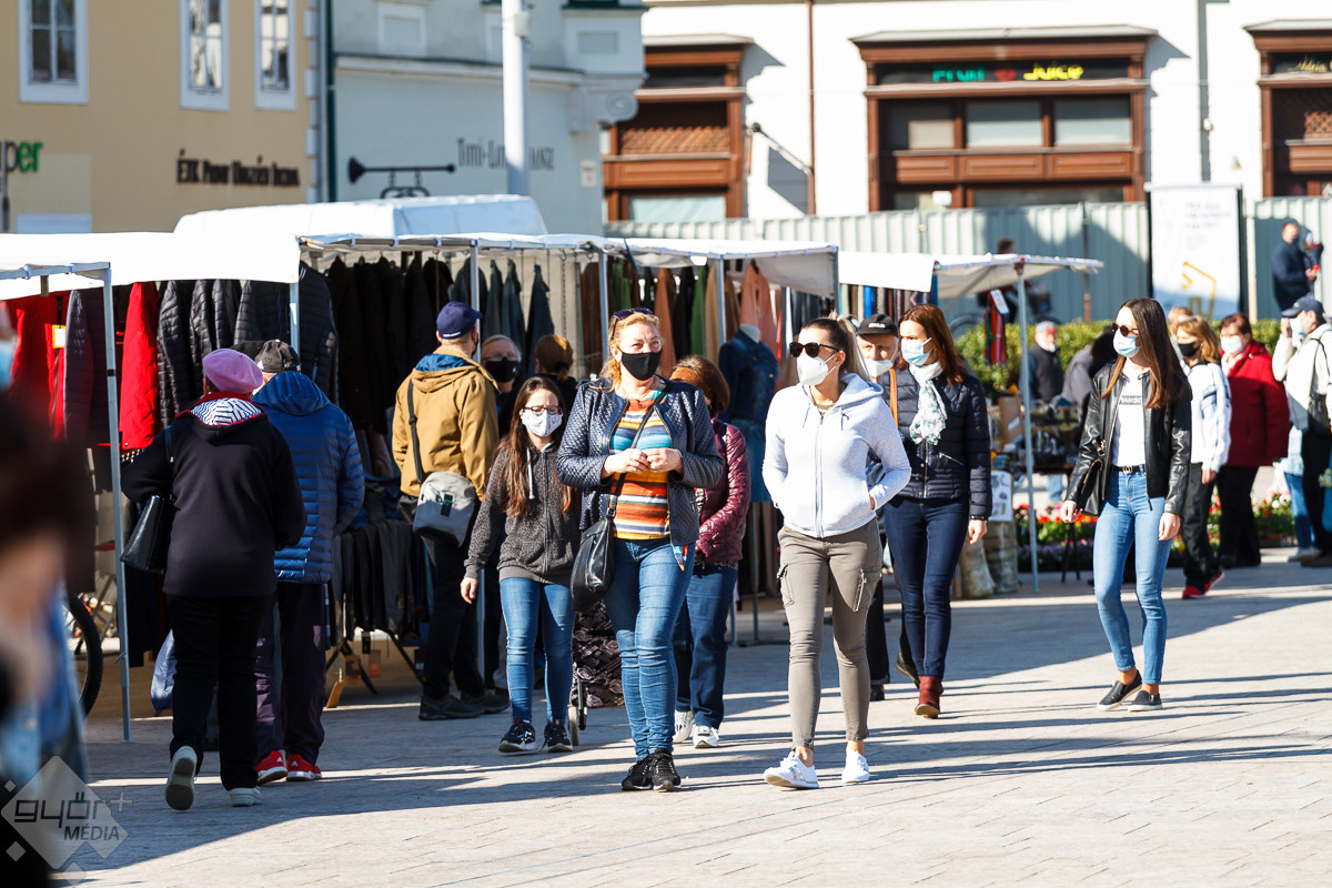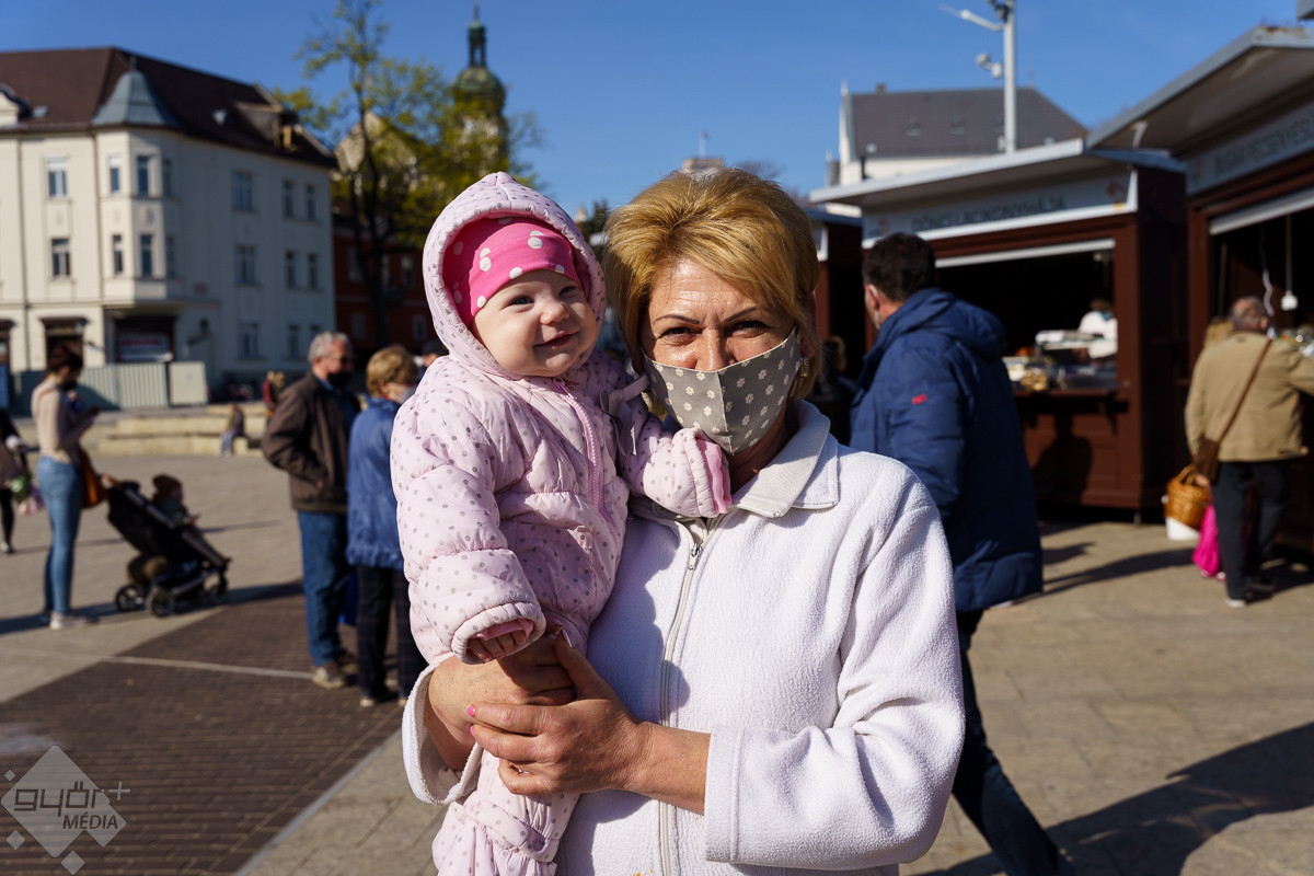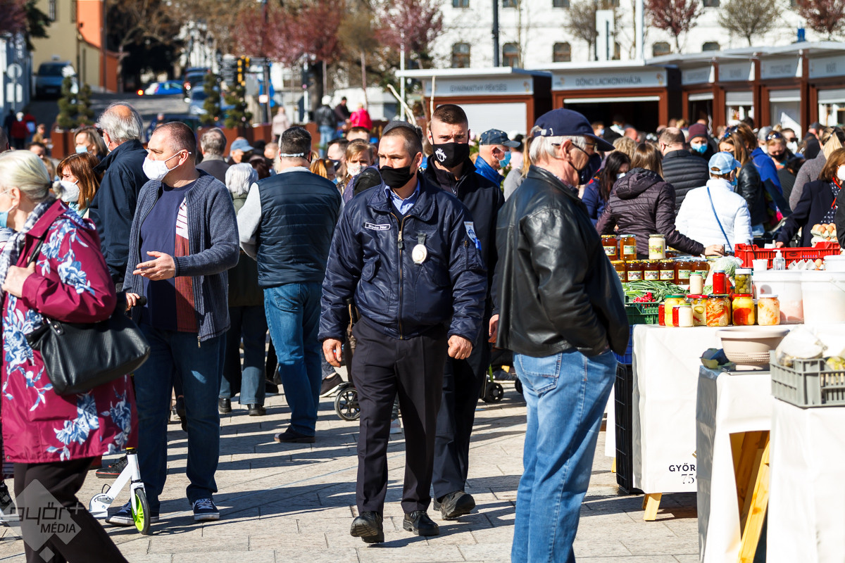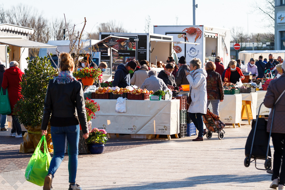 És igaza is lehetett, hisz mihelyst 10 fok fölé kúszott a higany a hőmérőkben a vásárlátogatási láz is megnőtt a győriekben egyre nagyobb számban, ám a biztonsági előírásokat szigorúan betartva jelentek meg a téren. Zöldséget, gyümölcsöt, mézet, szörpöt vásároltak, vagy egyszerűen csak bámészkodtak.