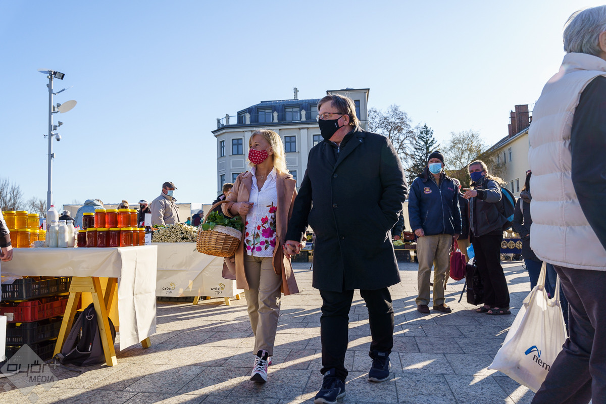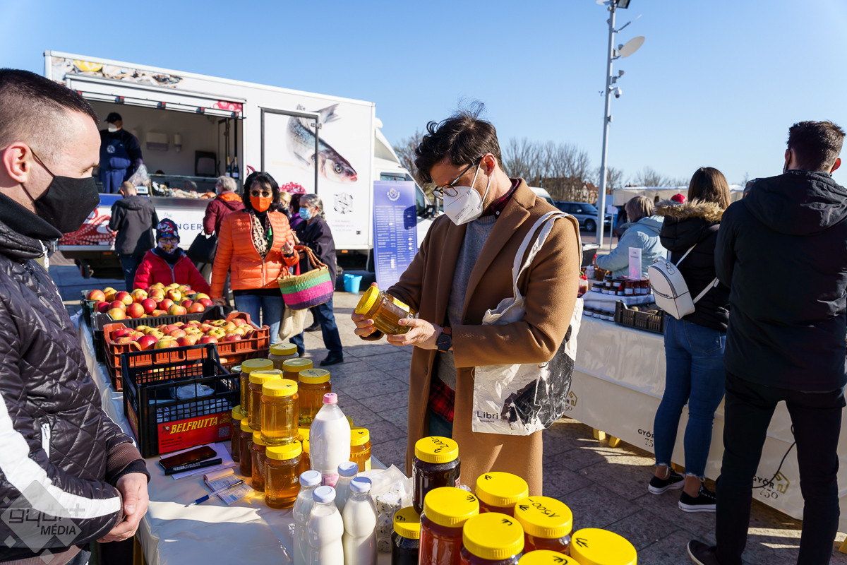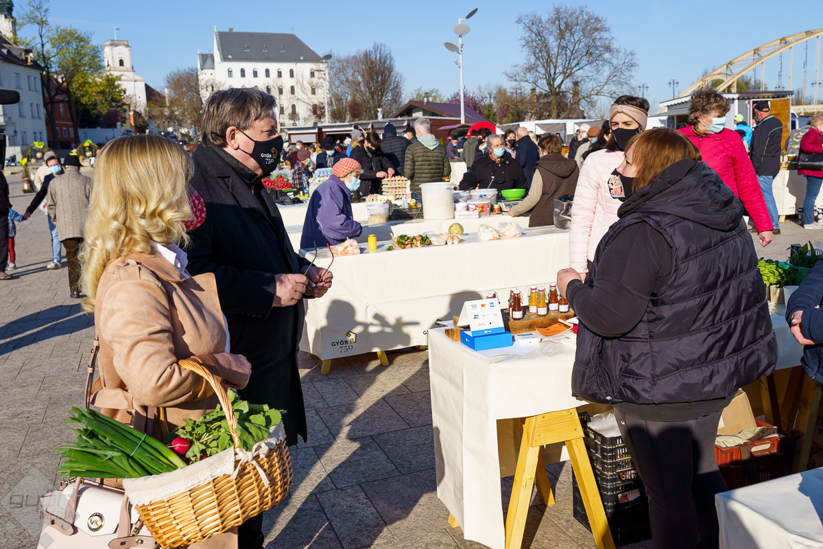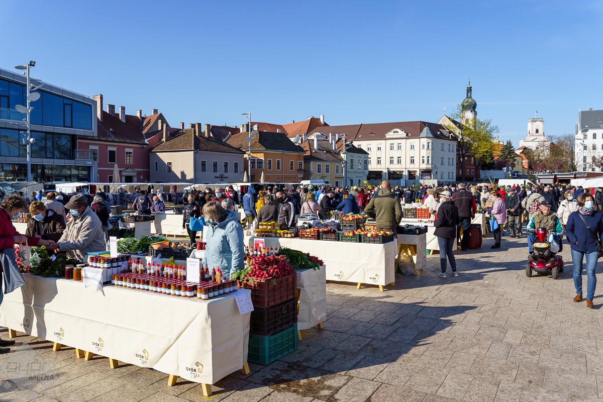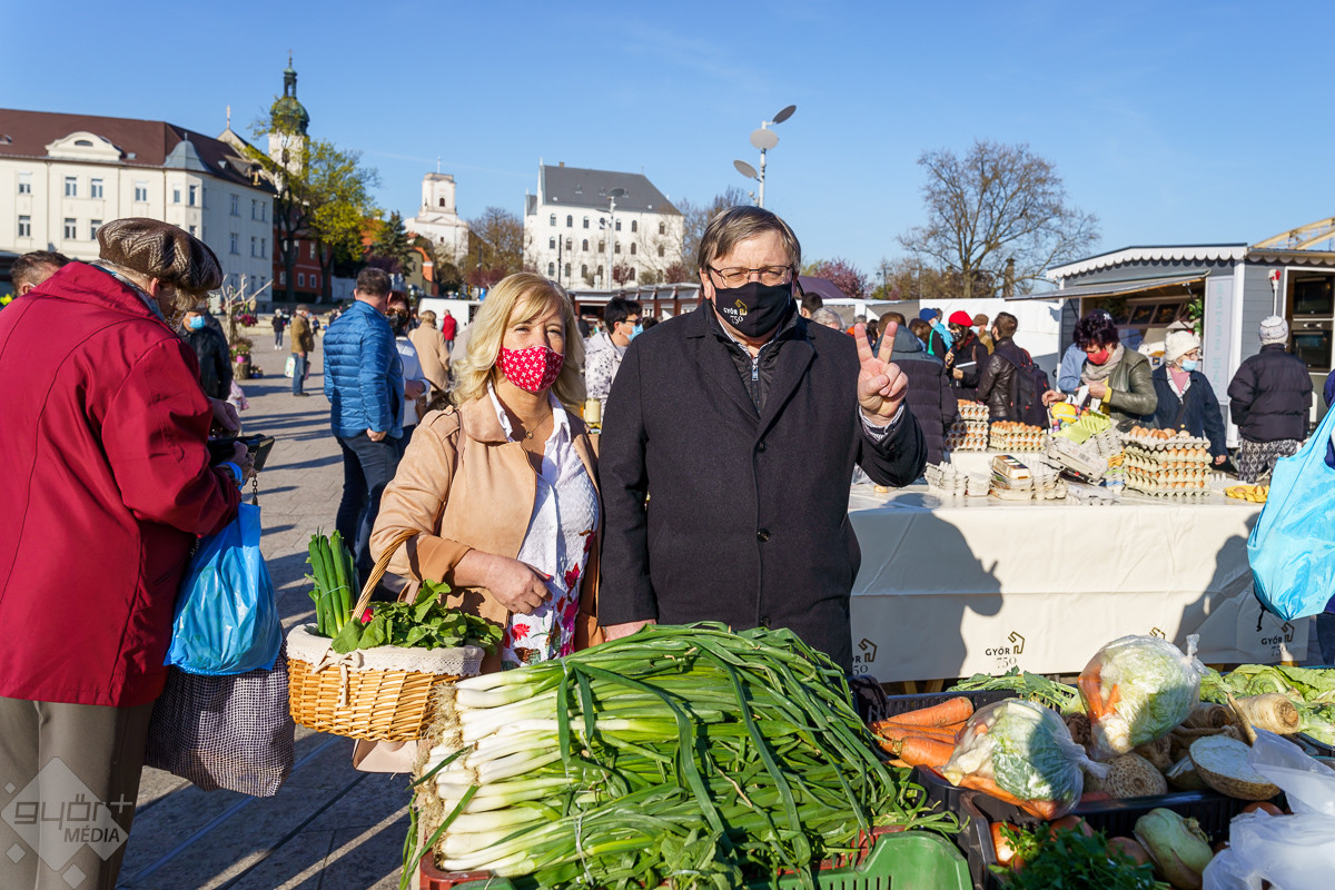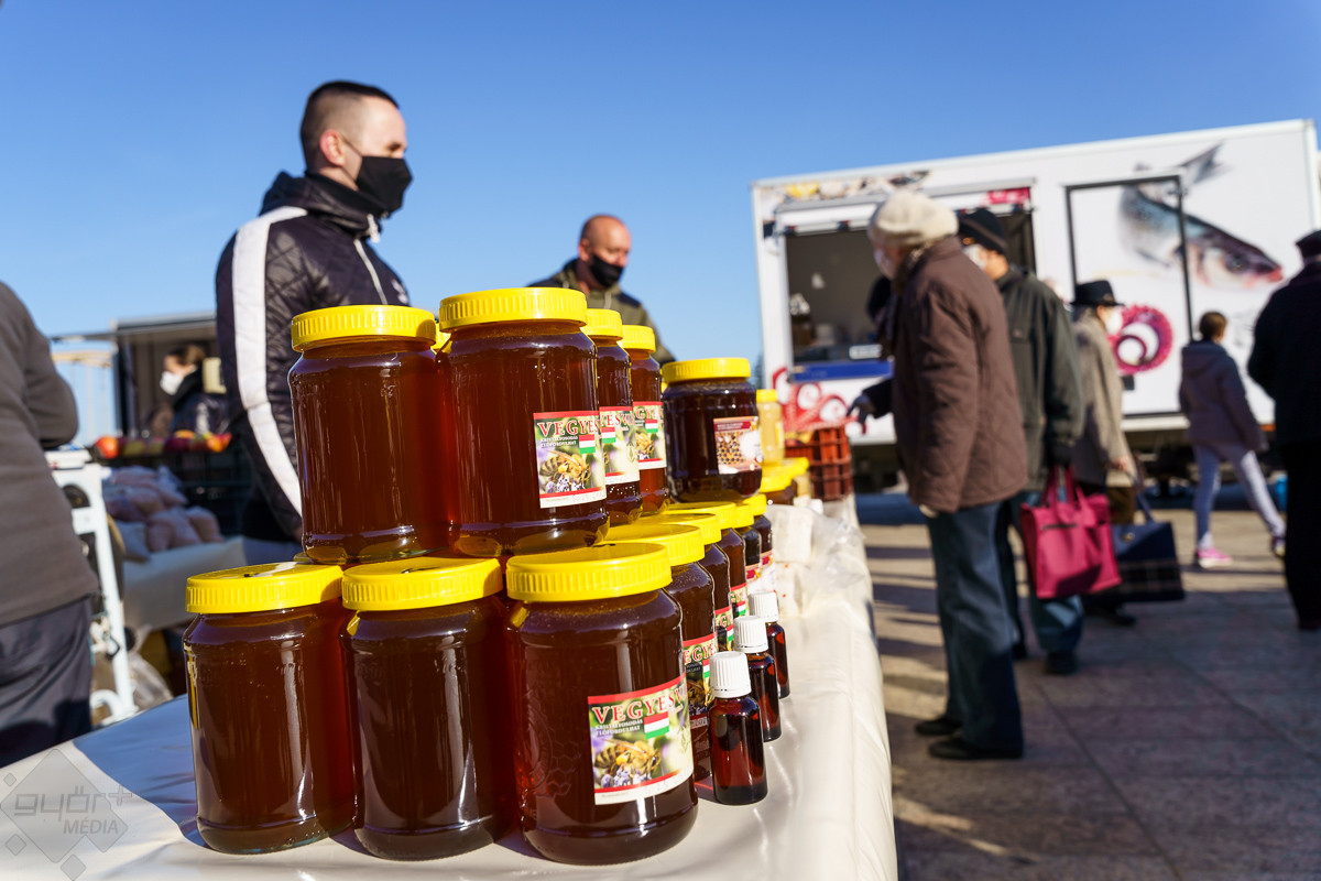 És igaza is lehetett, hisz mihelyst 10 fok fölé kúszott a higany a hőmérőkben a vásárlátogatási láz is megnőtt a győriekben egyre nagyobb számban, ám a biztonsági előírásokat szigorúan betartva jelentek meg a téren. Zöldséget, gyümölcsöt, mézet, szörpöt vásároltak, vagy egyszerűen csak bámészkodtak.