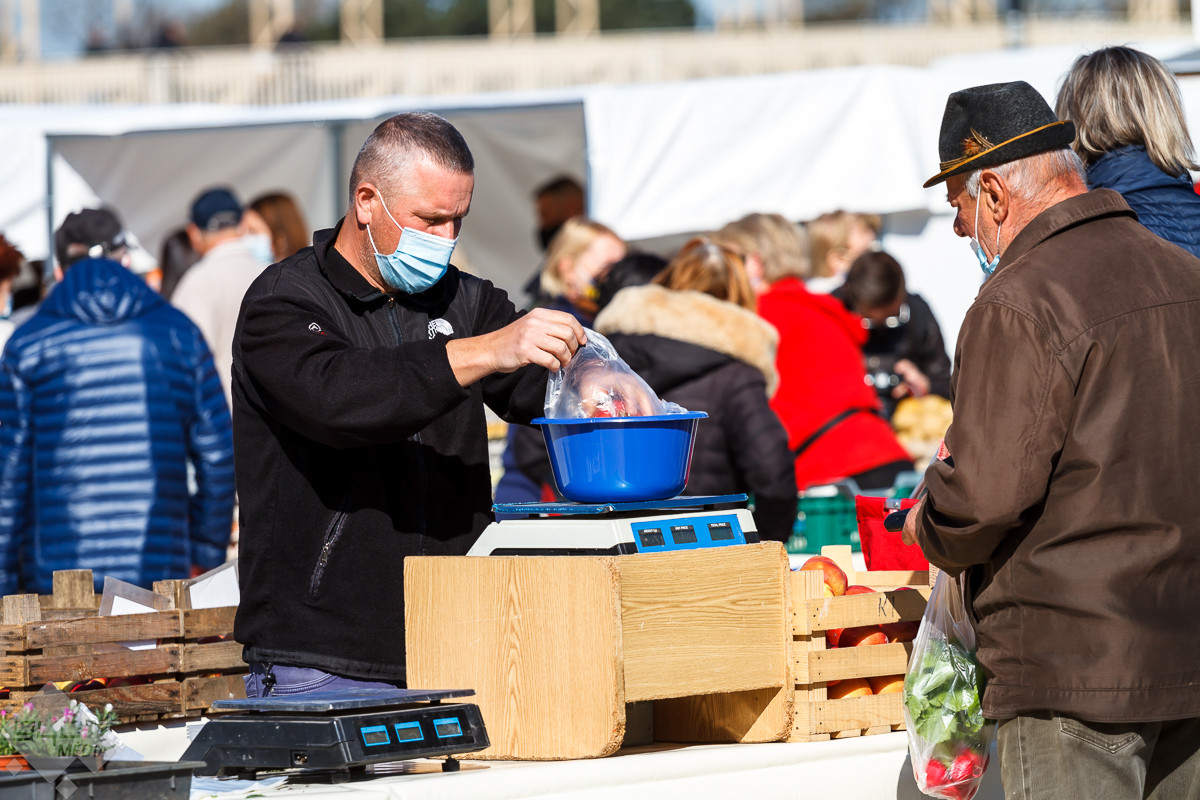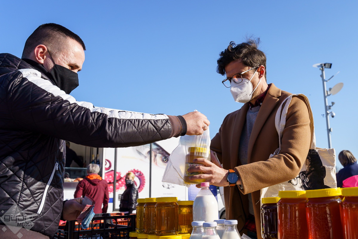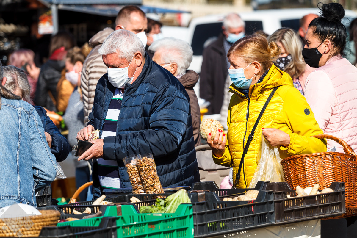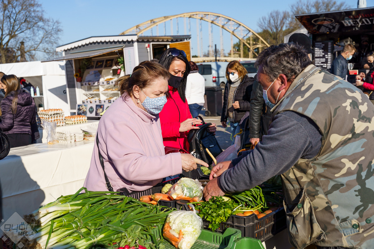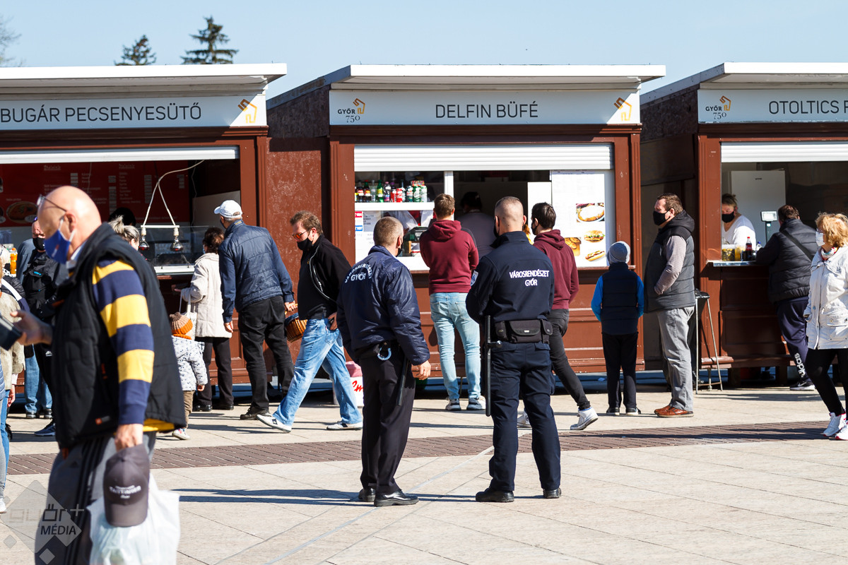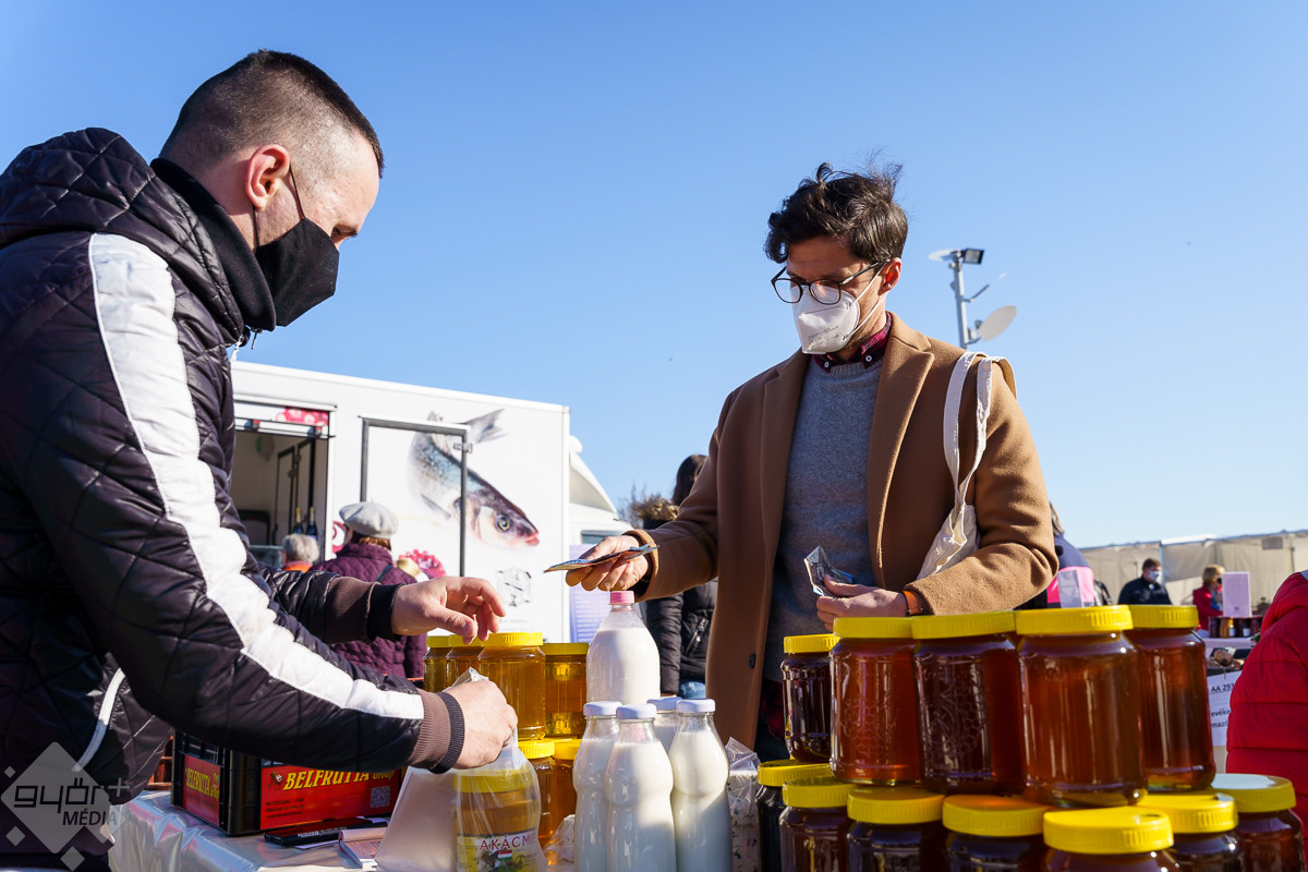 És igaza is lehetett, hisz mihelyst 10 fok fölé kúszott a higany a hőmérőkben a vásárlátogatási láz is megnőtt a győriekben egyre nagyobb számban, ám a biztonsági előírásokat szigorúan betartva jelentek meg a téren. Zöldséget, gyümölcsöt, mézet, szörpöt vásároltak, vagy egyszerűen csak bámészkodtak.