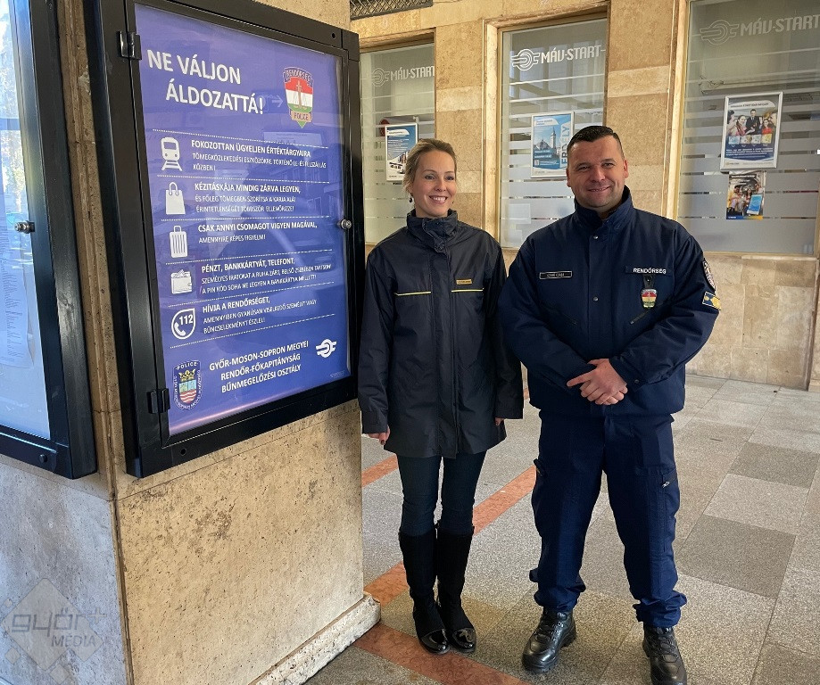 A Győr-Moson-Sopron Megyei Rendőr-főkapitányság Bűnmegelőzési Osztálya és a Magyar Államvasutak Zrt. is kiemelten fontosnak tartja a megfelelő tájékoztatást, mert hisznek abban, hogy ha minél többet beszélnek az utasokra leselkedő veszélyekre, akkor annak foganatja is lesz: jobban figyelünk a tárcákra, a csomagokra és természetesen egymásra is.