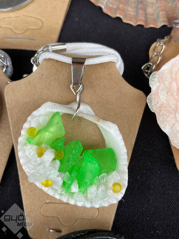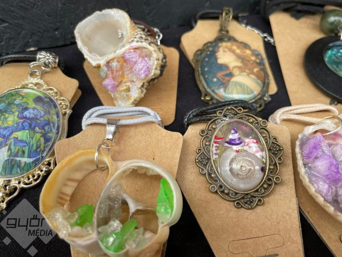Az alapanyagok közt találunk kagylót, csigát: van, amelyik a Balatonból vagy a Dunából való, de olyan is akad, amit Ausztráliából kapott az aranykezű ékszerkészítő.