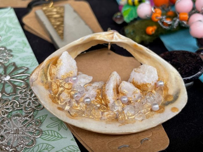 „Az elején – meg most is – rengeteget segítettek az ismerőseim! Hoztak alapanyagot, adtak régi, törött ékszereket, amikből bátran ötletelhettem, kísérletezhettem. A kedvencem a kagyló. A csiszolt kagylólapokat egyszerűen imádom! Törött darabokat használok, amiket addig csiszolgatok, míg meglátszik, mi is rejtőzik bennük. Aztán jöhet belőlük valami egészen csodás ékszer.”