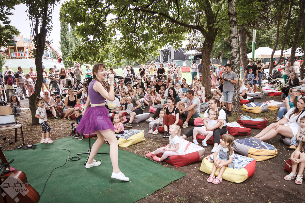 Borús idő ide vagy oda - rengetegen látogattak ki szombat délelőtt a Szenes Iván Parkba. A Tóparty programok sorozatát a Téti Ifjúsági Fúvószenekar nyitotta meg, ezt követően Kovácsovics Fruzsina adott interaktív koncertet a gyerekeknek.