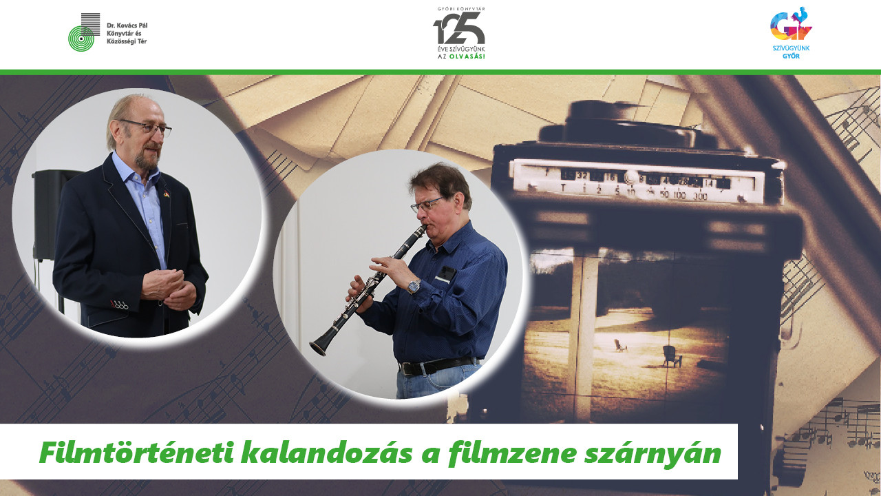 2023. február 16-án (csütörtökön) 17 órai kezdettel zenés, interaktív filmtörténeti kalandozáson vehetnek részt a Dr. Kovács Pál Könyvtár és Közösségi Tér Bezerédj-kastély Művelődési Házában (Győr, Győri út 90.). Előadó: Ferenczi Tamás. Közreműködik: Drapán László klarinéton. A belépés díjtalan!