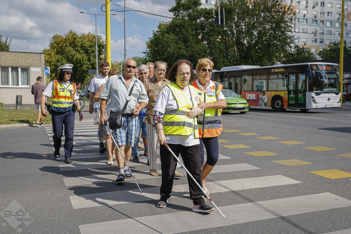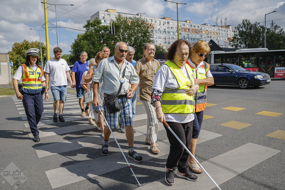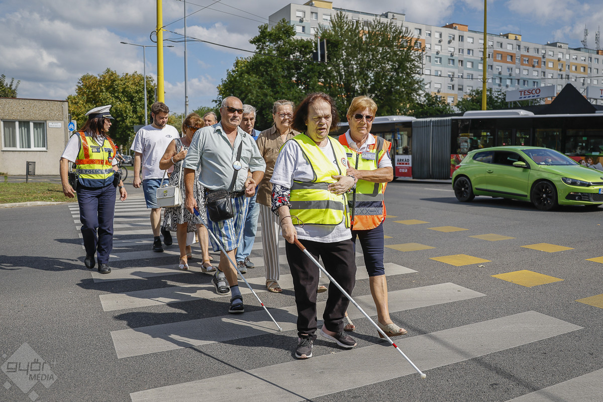 Figyelemfelhívó sétát szervezett a Vakok és Gyengénlátók Győr-Moson-Sopron vármegyei Egyesülete és a Győri Rendőrkapitányság Közlekedésrendészeti Osztályának baleset-megelőzési osztálya.