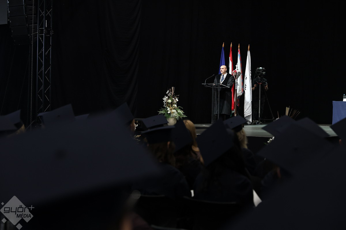 Szerdán hármas diplomaosztóval folytatódott a Széchenyi István Egyetem téli diplomaosztó hete. Az Apáczai Csere János Pedagógiai, Humán és Társadalomtudományi Kar, az Egészség- és Sporttudományi Kar, valamint a Deák Ferenc Állam- és Jogtudományi Kar diplomaátadó ünnepségét egyszerre tartották meg a győri Egyetemi Csarnokban.