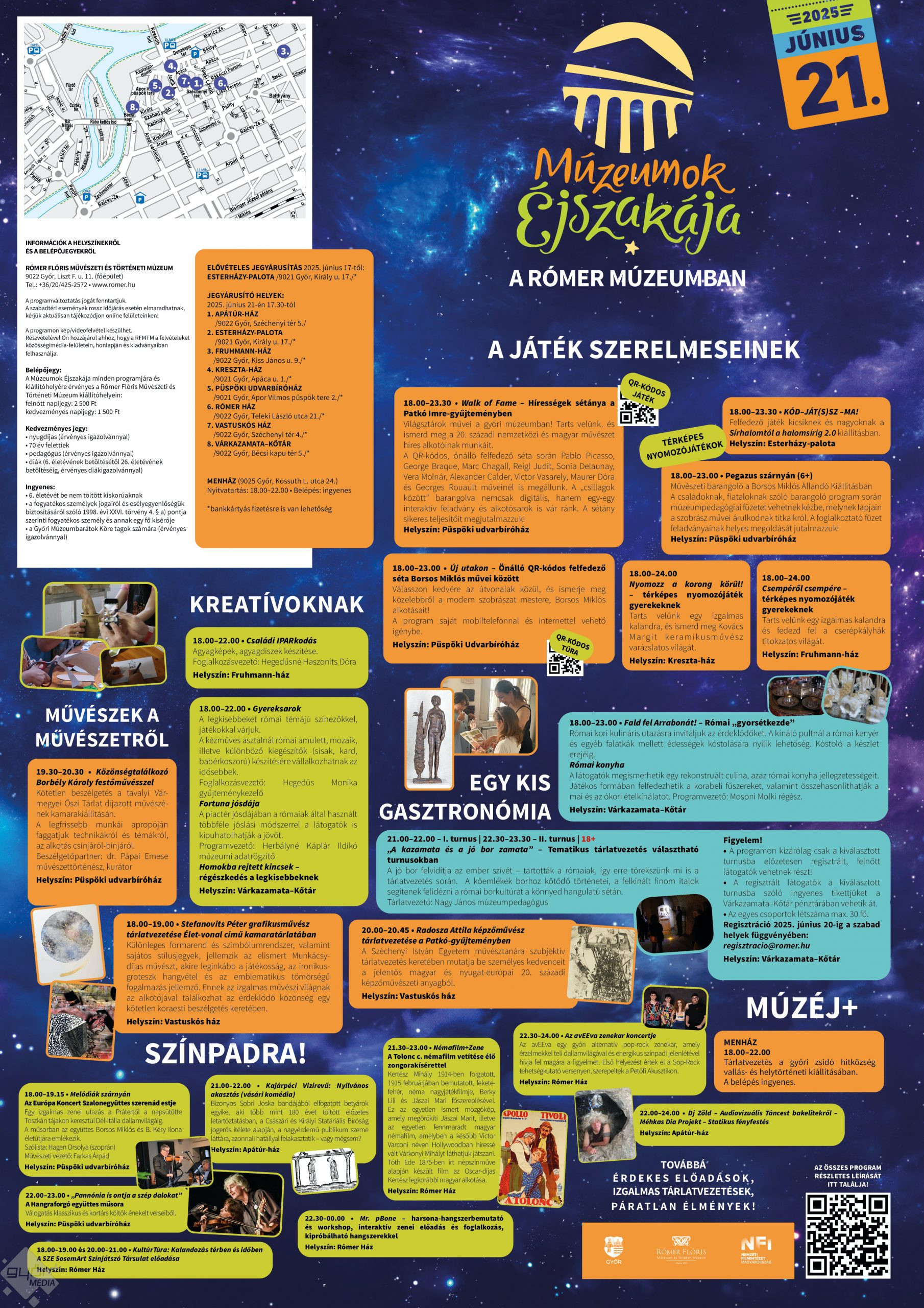 Ahogy azt már megszokhattuk, idén is igazi programkavalkáddal kapcsolódik be a Rómer Múzeum a Múzeumok Éjszakájába - 8 helyszínen, több mint 60 program várja az érdeklődőket 17 óra és éjfél között. A részletekről Székely Zoltánnal, a Rómer Múzeum igazgatójával és Szabadvári-Farkas Zsuzsanna programszervezővel beszélgettünk.
