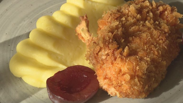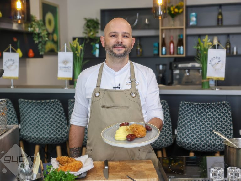 Hatt Róbert, a Gyirmót Sport és Wellness Hotel Arundo éttermének séfje az Ízfaktor konyhájában ezúttal kijevi jércemellet készített, természetesen modern köntösben – pankó morzsával, selymes burgonyapürével és egy csipetnyi magyar leleménnyel. Ropogós aranykéreg, lágy, vajjal telt belső és egy falatnyi savas meglepetés: az ecetes szilva.