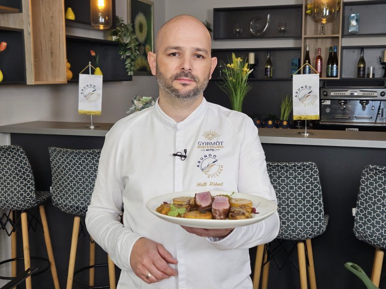 Hatt Róbert, a Gyirmót Sport és Wellness Hotel Arundo éttermének séfje az Ízfaktor konyhájában ezúttal kacsamellet készít. A rozéra sütött kacsamell hízott májjal önmagában is ünnepi élmény, de a chilis mangóchutney, a fondant burgonya és a mézes-balzsamecetes narancsmártás együtt olyan harmóniát hoz, amely bármely éttermi tányéron megállná a helyét.