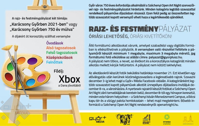 Győr város 750 éves évfordulója alkalmából a Széchenyi Open Art Night szervezőivel rajz- és festménypályázatot hirdettünk. Minden kategória legtöbb szavazattal rendelkező pályaműve díjazásban részesült - mutatjuk a győzteseket!