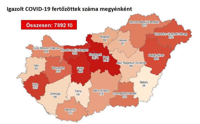 510 újabb magyar állampolgárnál mutatták ki az új koronavírus-fertőzést (COVID-19), ezzel 7892 főre nőtt a hazánkban beazonosított fertőzöttek száma. Elhunyt 3 krónikus beteg, az elhunytak száma így 624 főre emelkedett, 3952-en pedig már meggyógyultak. Az aktív fertőzöttek száma 3316 fő. Az aktív fertőzöttek 43%-a, az elhunytak 59%-a, a gyógyultak 42%-a budapesti. 139 koronavírusos beteget ápolnak kórházban, közülük 9-en vannak lélegeztetőgépen.