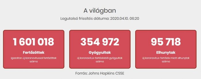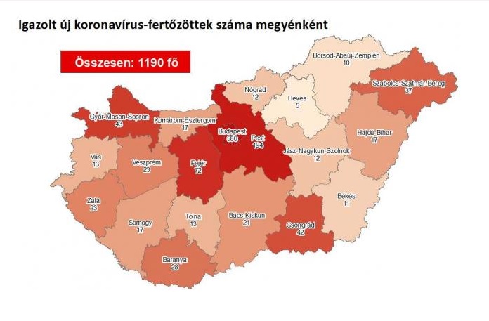 Újabb magyar állampolgároknál mutatták ki az új koronavírus-fertőzést (COVID-19), ezzel 1190 főre nőtt a hazánkban beazonosított fertőzöttek száma. Elhunyt újabb 11 idős, krónikus beteg.