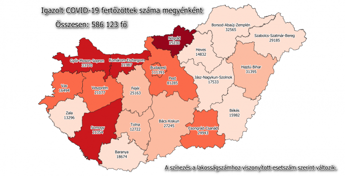 A kormányzati portálon azt írták: 586 123-ra nőtt a Magyarországon azonosított fertőzöttek száma. Az elhunytaké 18 703-ra emelkedett, a gyógyultak száma 378 176.