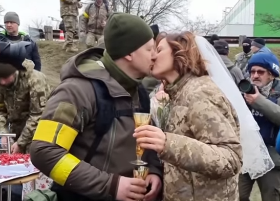 Egy kijevi ellenőrző ponton, az orosz invázió 11. napján, március 6-án a két ukrán katona, Lesia Ivascsenko és Valerij Filimonov összeházasodott. Mind a férj, mind a feleség az ukrán területvédelmi egység tagja, ezért úgy döntöttek, hogy lemondanak az ünnepi viseletről, és inkább egyenruhájukat öltik magukra.