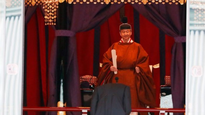 “Trónra léptem az alkotmánnyal és a császári házra vonatkozó törvénnyel összhangban. (…) Esküszöm, hogy az alkotmány szerint fogok cselekedni, és teljesíteni fogom kötelességemet az állam és a japán nép egységét jelképezve” – mondta Naruhito a császári palotában tartott ceremónián, amelyen 190 országból és nemzetközi szervezetből mintegy kétezer rangos vendég, külföldi uralkodó és közjogi méltóság vett részt, köztük Áder János köztársasági elnök.