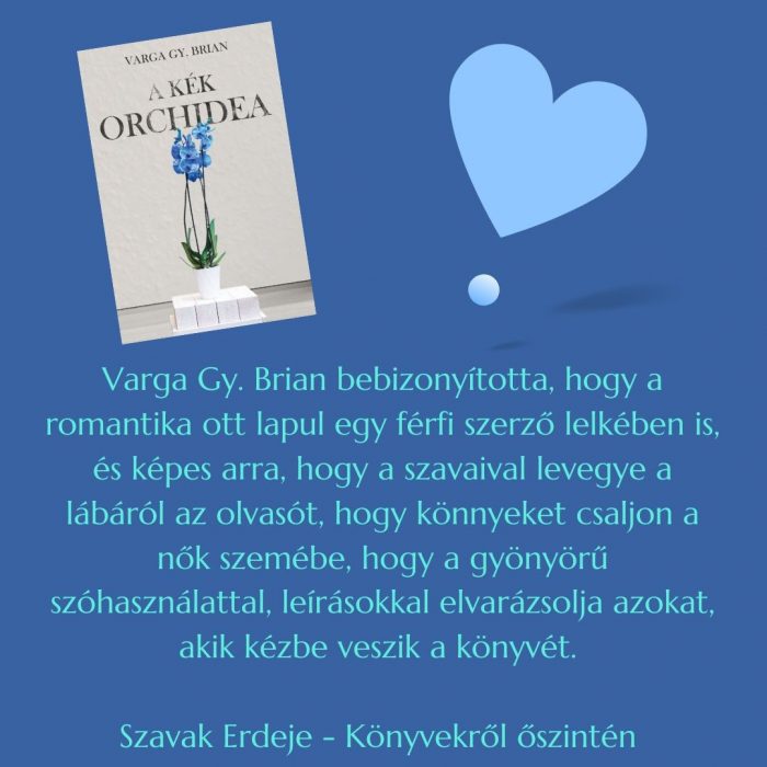 – Nem. Az egyik kiadó minden évben hirdetett pályázatot, aminek az előszűrőjén átment A kék orchidea című regényem egyik korábbi változata, ám a lektori vélemény kőkeményen bírálta, és nem jutottam vele tovább. Ez, és a többi visszautasítás egyre inkább csak erősített, hogy ennél jobbat kell írnom, és saját magamnak akartam bebizonyítani, hogy képes vagyok rá.