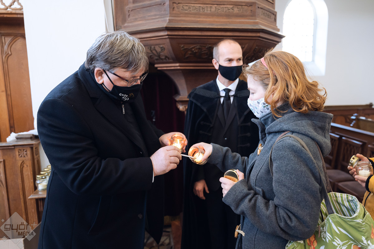 A Kossuth utcai református templomban szintén szép számmal gyűltek össze advent negyedik vasárnapján. Az eseményen részt vett Győr polgármestere, a közösség presbitere, dr. Dézsi Csaba András is, aki önként vállalta a lángőri feladatot.