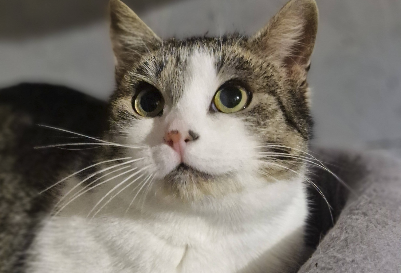 Ez az állandóan csodálkozó szemű kislány cicus bárkit elvarázsol a tekintetével. Gyönyörű szemével minden nap rácsodálkozik arra, hogy biztonságban van, és a tányérok is újratöltődnek.