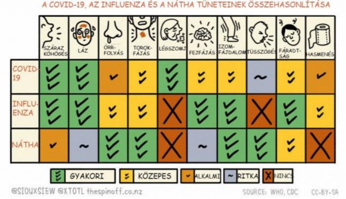 Fontos információk hiteles forrásból. A Covid-19, az infuenza és a nátha tüneteinek összehasonlítása.