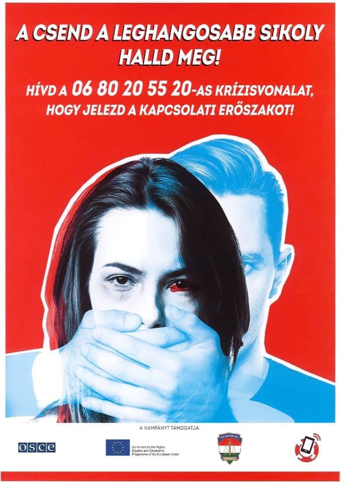 Az Országos Rendőr-főkapitányság az Országos Kríziskezelő és Információs Telefonszolgálattal együttműködve, „A csend a leghangosabb sikoly, halld meg!” elnevezésű kampányt indít 2019. november 25-től december 4-ig, melynek fókuszában a kapcsolati erőszak megelőzése áll. A kampány része az Európai Biztonsági és Együttműködési Szervezet nemi alapon elkövetett erőszak, hozzátartozók közötti erőszak kezelésével foglalkozó projektjének.