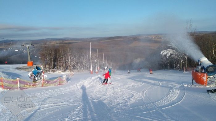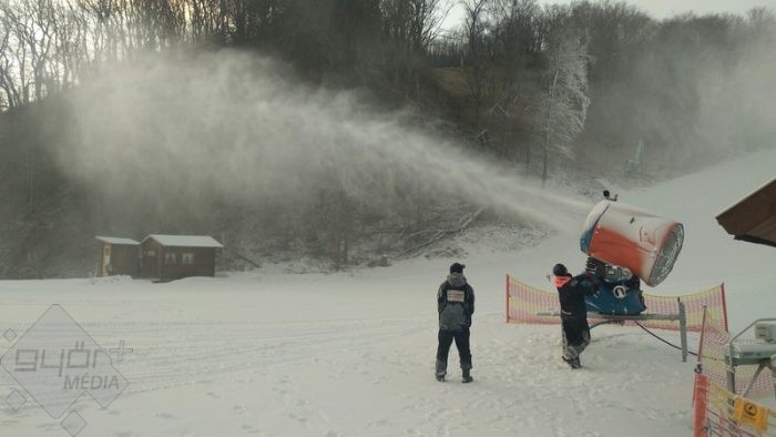 „Negyvenkilenc hóágyúnk van, ezekkel az idei télen eddig 170 ezer köbméter havat gyártottunk” – magyarázza László Márk. Műhóban kevésbé járatosak számára hozzáfűzi, hogy a technikai hó, ahogy ők nevezik, sokkal nehezebben olvad, mint a természetes hó.