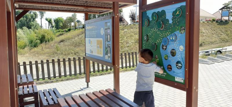 A tanösvényen interaktív, magyar és angol nyelvű táblák vezetik a látogatókat. A séta minden korosztály számára élményt nyújt. Valaki a panorámában gyönyörködik az új padokon ülve, mások szívesen elolvassák a helytörténeti érdekességeket, és biztosan akad olyan is, aki az okos telefonja segítségével filmet néz, applikációt tölt le, vagy lejátssza a Gönyűről szóló mesét a család apróságainak. A gyerekek figyelmét nemcsak a mese köti le, hanem a táblákba épített játékok is.