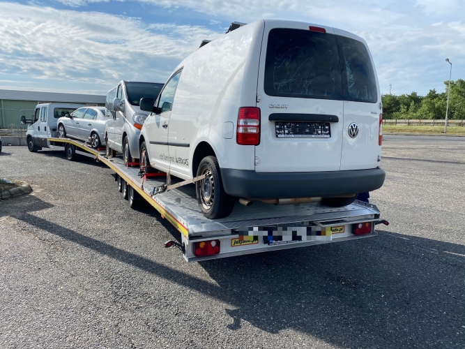 A Győr-Moson-Sopron Megyei Rendőr-főkapitányság Közlekedésrendészeti Osztályának munkatársai hétfőn délelőtt az M1-es autópályán, a hegyeshalmi határátkelőhely közelében állították meg az autószállító trélert, amely két kistehergépjárművet, valamint egy személygépkocsit szállított.