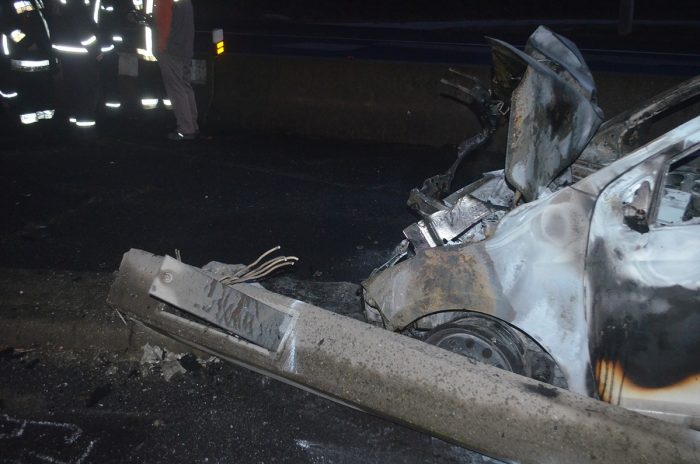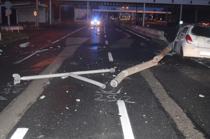 A járművezető először egy jelzőtáblának, majd egy kandelábernek hajtott, aminek következtében az autója kigyulladt.