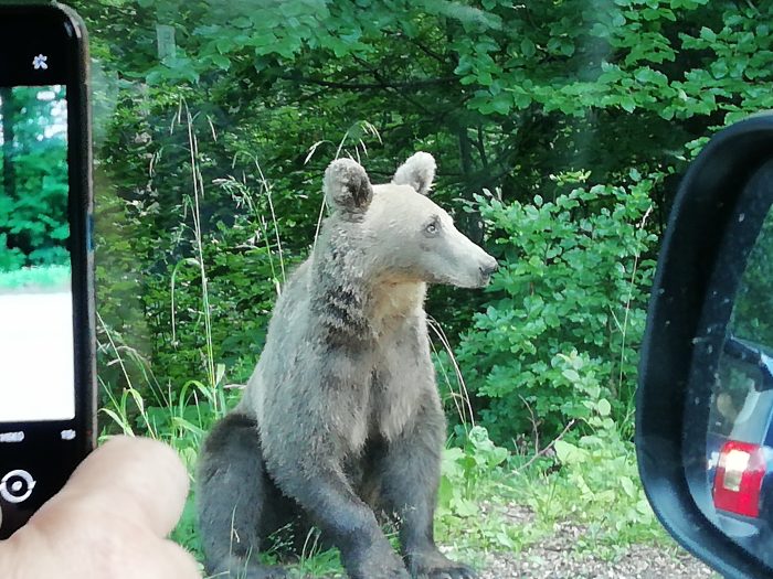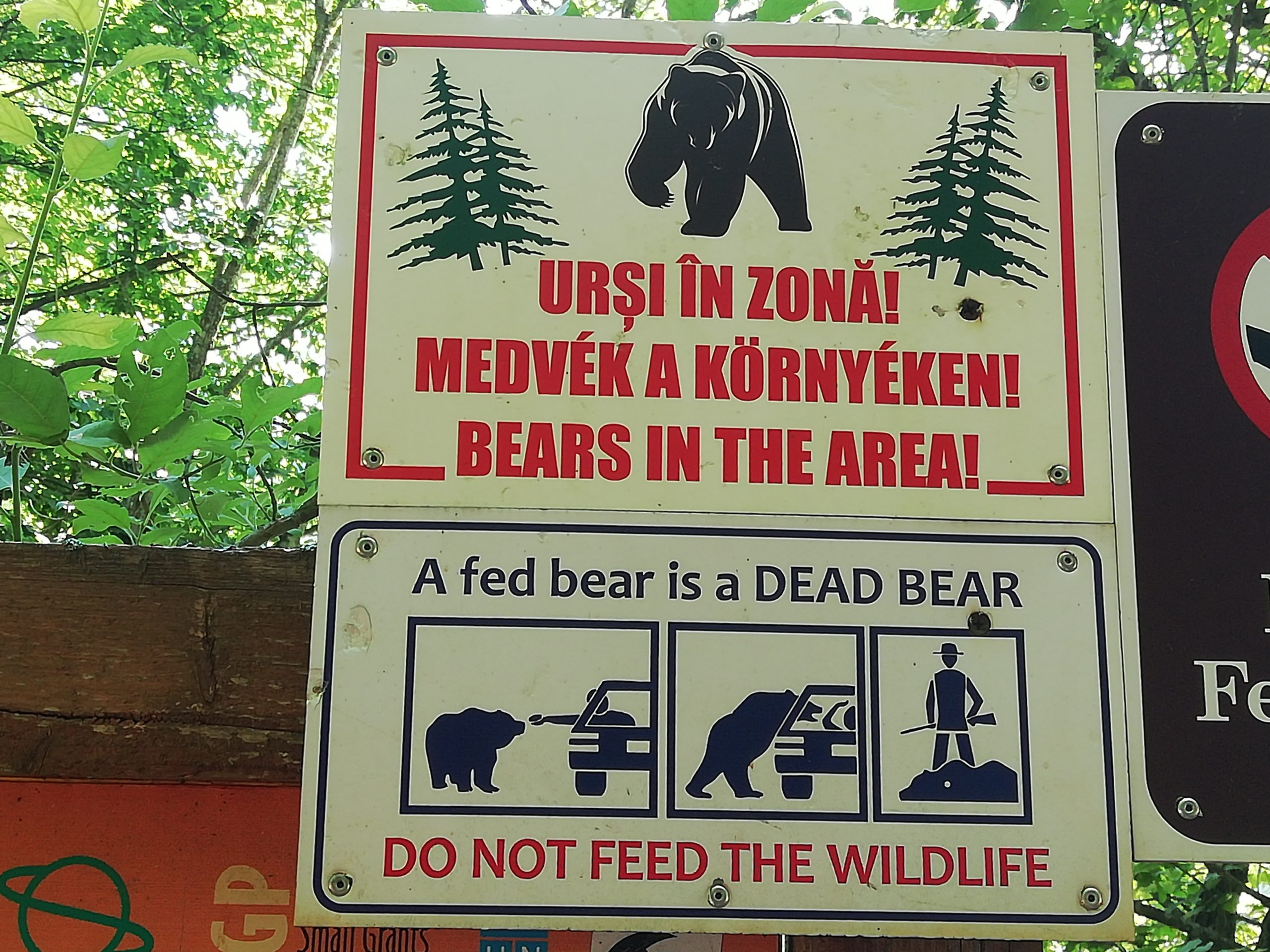 Medvével védett terület – hirdeti a felirat az 50 lejes divatpólón, s valóban Erdélyben, Székelyföldön ma ez a valóság. A barna medve túlszaporodását jelzi ember és vadállat mindennapossá vált találkozása erdőn, legelőn, autóúton, faluban és városban. Ami a helybélieknek rettegést, veszélyt, anyagi károkat, az a turistáknak kíváncsiságot, borzongató izgalmat, valódi kihívást jelent. A mi mackónk a Szent Anna tóhoz vezető út szélén álldogált. Érdeklődve figyelte az autókat, majd leült és modelleket megszégyenítő pózokban várta a fotózást. Másnap pár kilométerrel arrébb, az út túl oldalán feküdt, unottan nézte az előtte elhaladókat. Őt látva nehéz elképzelni az olyan őrjöngő fenevadat, amelyik bizony ottlétünk alatt is emberre támadt.