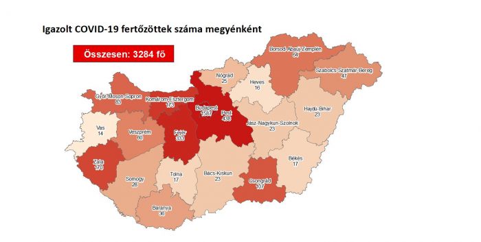 Újabb magyar állampolgároknál mutatták ki az új koronavírus-fertőzést (COVID-19), ezzel 3284 főre nőtt a hazánkban beazonosított fertőzöttek száma. Elhunyt újabb 8 krónikus beteg. Ezzel 421 főre emelkedett az elhunytak száma, 958-an pedig már gyógyultan távoztak a kórházból. Az aktív fertőzöttek száma 1905 főre csökkent.
