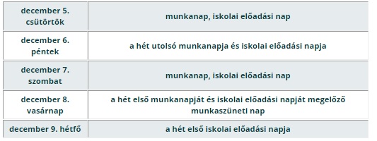 2019. december 5. és 9. között a Volánbusz Zrt. helyi és helyközi autóbuszjáratai az alábbiak szerint közlekednek: