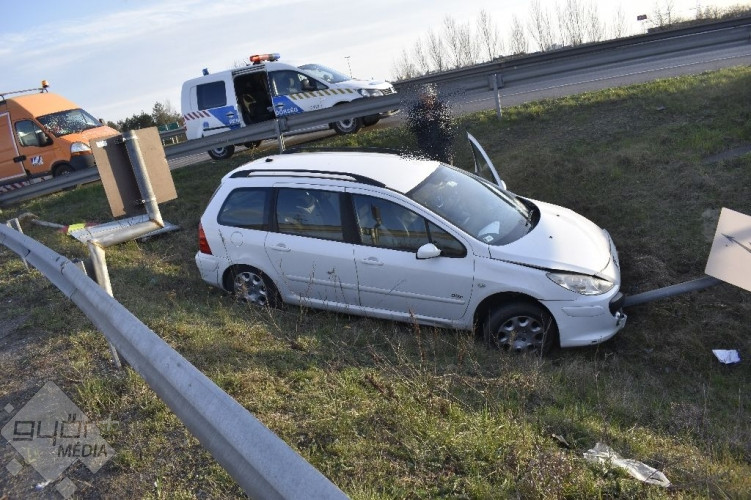 Az autópálya 83-as számú főút lehajtója környezetében járműve sebességét vélhetően nem az útviszonyoknak megfelelően választotta meg, és a lehajtó ág, valamint a leállósáv közötti területen a szalagkorlátnak ütközött, majd az úttest melletti árokba sodródott, ahol három közúti jelzőtáblát is kidöntött. A baleset során anyagi kár keletkezett. A sofőrrel szemben a rendőrök alkoholtesztet alkalmaztak, ami pozitív értéket mutatott, ezért őt a helyi rendőrkapitányságra előállították.