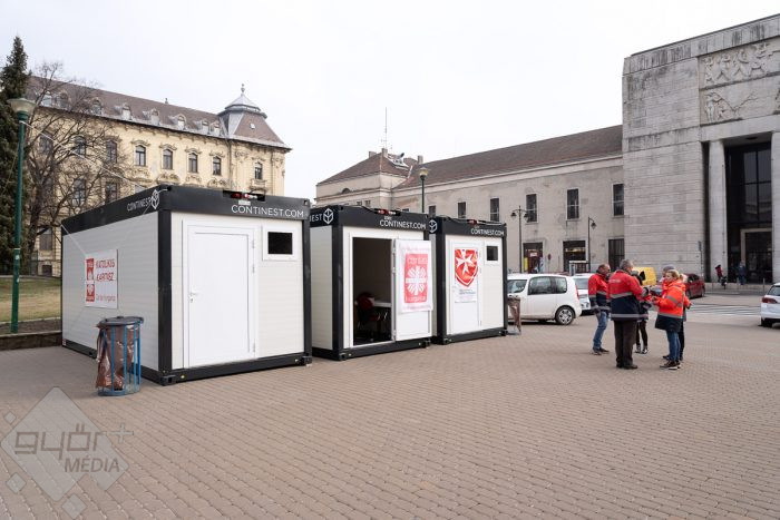 Győrben segítőpont nyílt a menekülteknek szombattól a Honvéd ligetben, a vasútállomással szemben. A három konténerből álló objektumba szakemberek várják a háború miatt érkező menekülteket, akik kapnak vizet, élelmet és azonnali, hiteles tájékoztatást.
