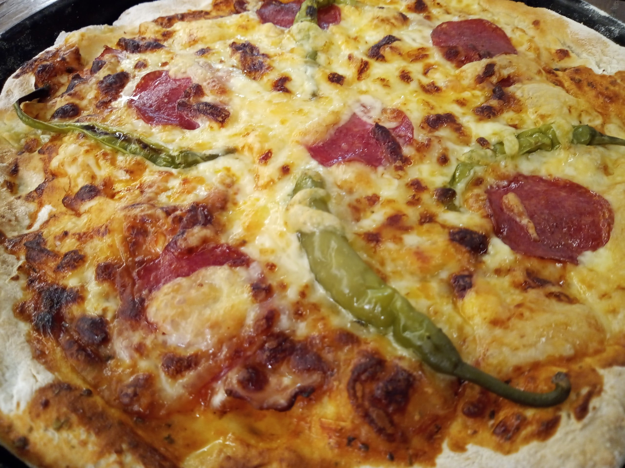 Nem kell sokat bajlódnunk a kelesztéssel, és a pizza szósz is pofon egyszerű. Két fajta sajt, szalámi, bacon teszi igazán finommá a ropogós házi pizzánkat.