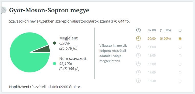 Győr-Moson-Sopron megyében közel 7 százalékos a részvétel, 25 578 szavazóval.