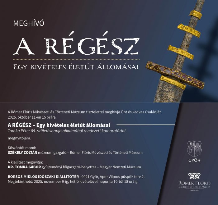 Tomka Péter 85. születésnapja alkalmából rendezett kamaratárlat megnyitójára invitálja az érdeklődőket a Rómer Flóris Múzeum.