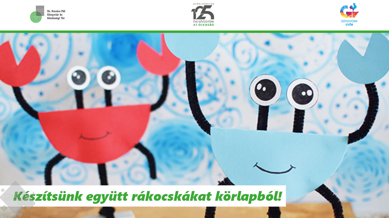 2023. június 28-án (szerdán) két időpontban 10.00 és 10.45 órakor a Központi Könyvtár klubhelyiségében (9023 Győr, Herman Ottó utca 22.) a gyerkőcök rákocskákat készíthetnek körlapból.