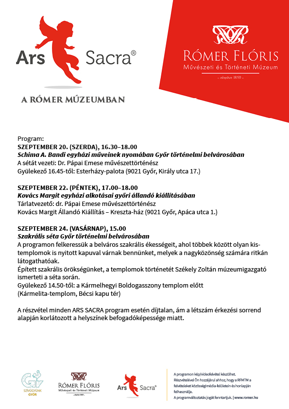 Íme ezek a Rómer Flóris Művészeti és Történeti Múzeum programjai az Ars Sacra Fesztiválhoz kapcsolódóan.